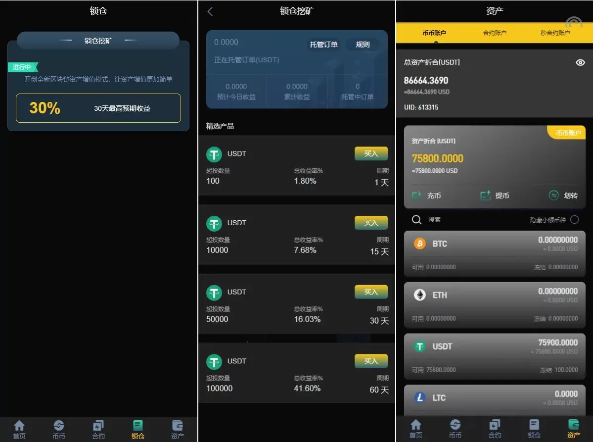🔹 锁仓挖矿功能:系统支持 锁仓挖矿,用户可以参与锁仓获取收益,增加平台的投资理财功能。
