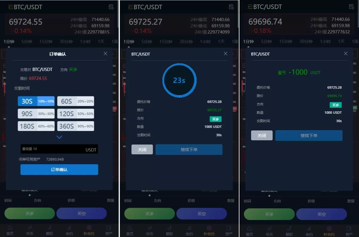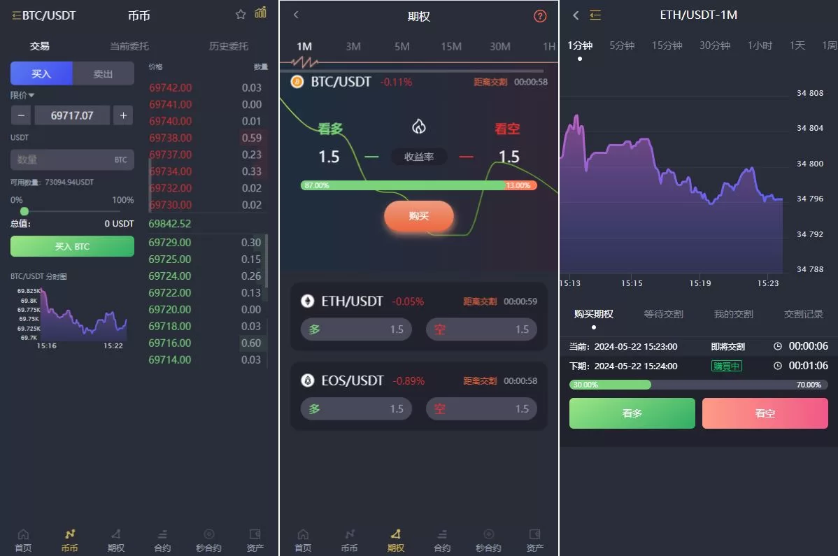 🔹 合约交易与秒合约:提供 期权交易、合约交易 和 秒合约交易 功能,满足不同类型的投资需求。
