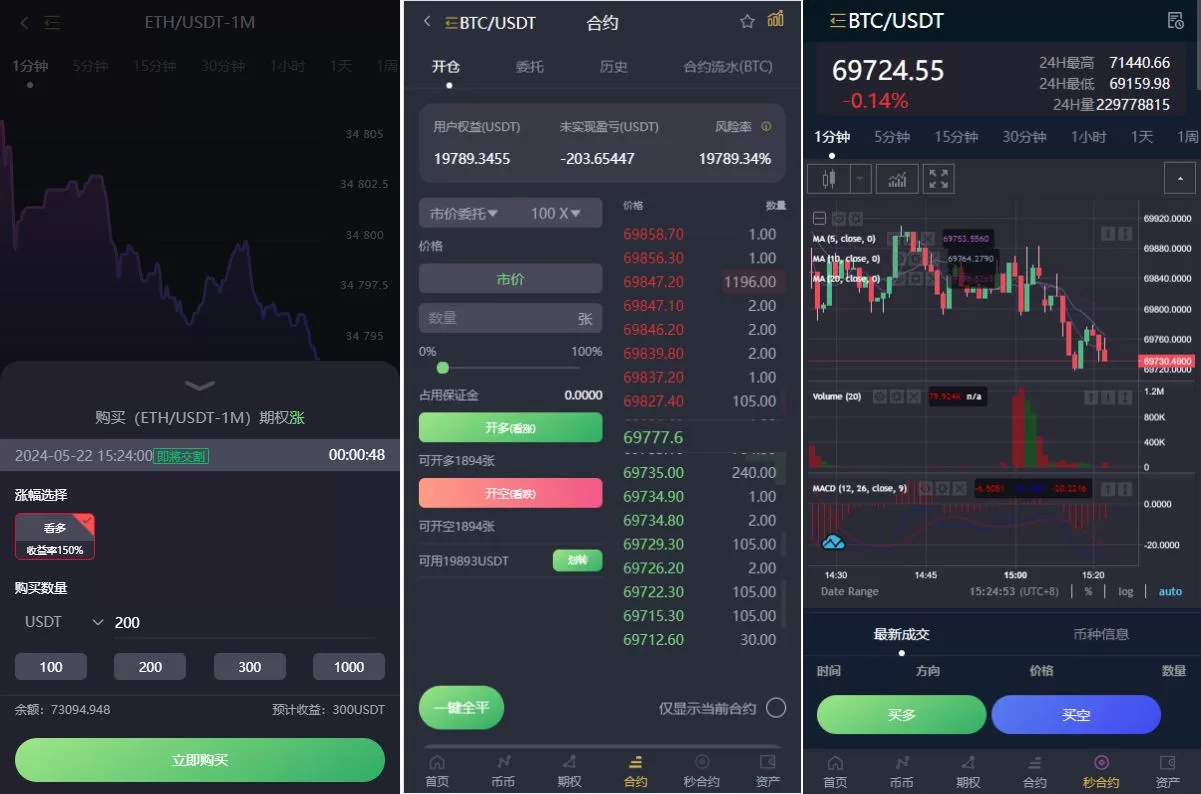 该系统适合需要多國語言支持、合约及秒合约交易的场景,源码全开源,适合二次开发,操作简便,功能全面。