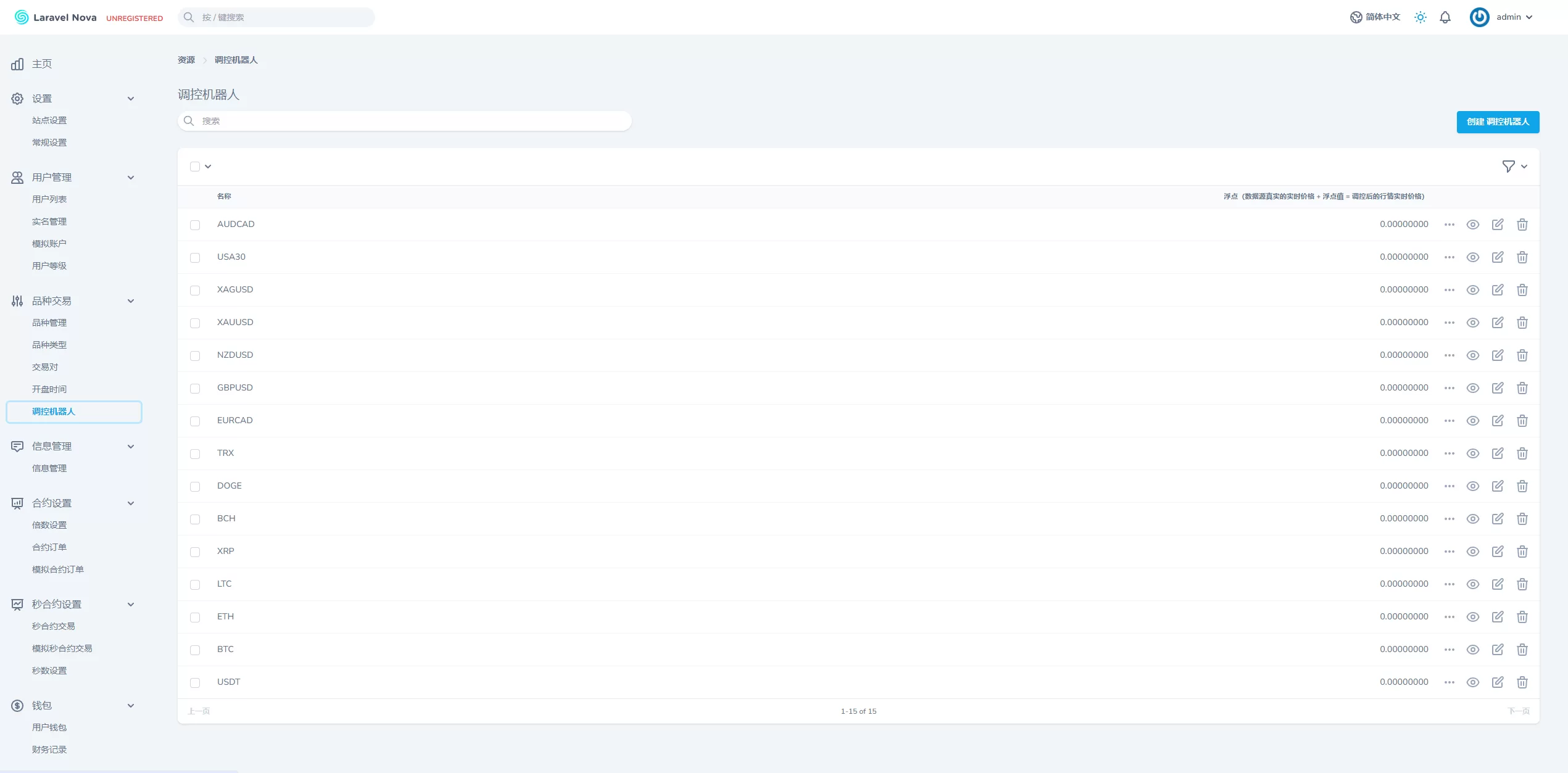 🔹 K线全局控:系统支持 K线数据全局控制,并且可以设置 上涨/下跌浮动点,使得每个币种的K线可以灵活控制。
