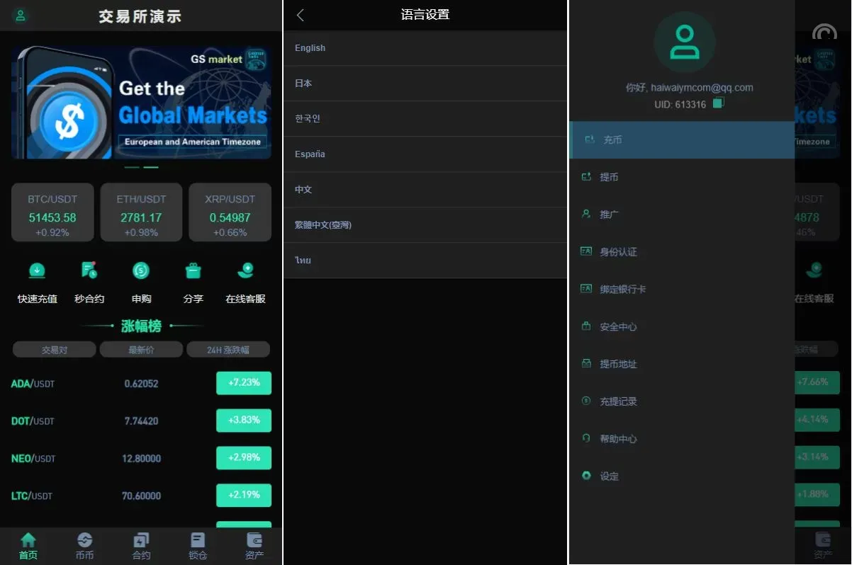 - 强大功能支持:支持 秒合约、永续合约、锁仓挖矿 和 新币认购 等多种功能,适合不同类型的投资者。