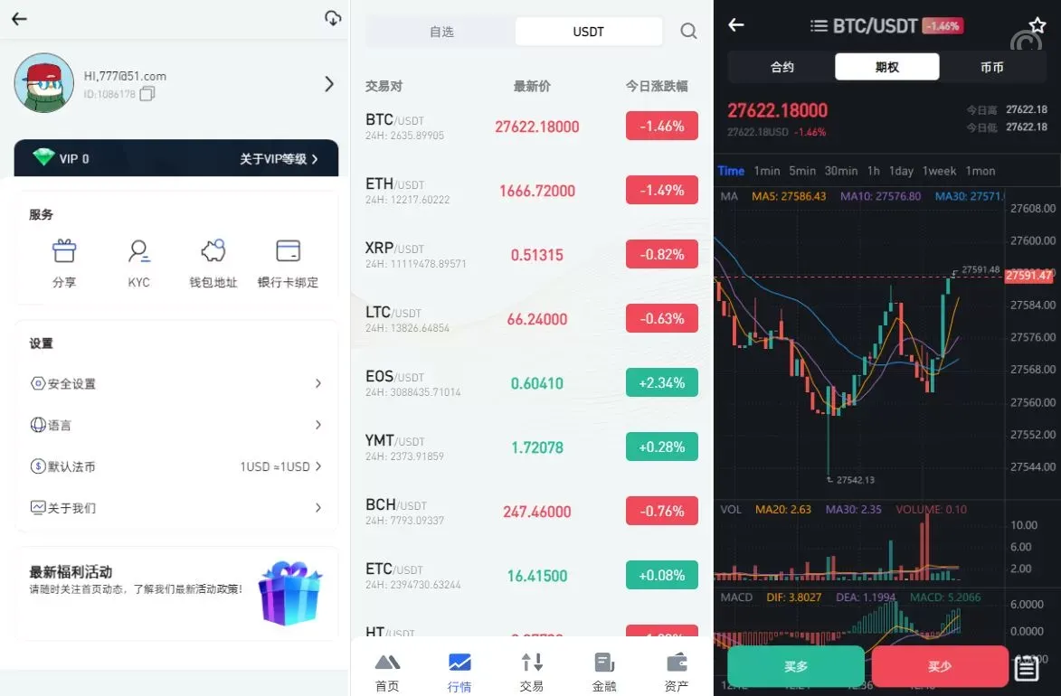 - 强大的功能集成,包括 币币交易、期权交易、IEO、跟单交易 和 锁仓理财。