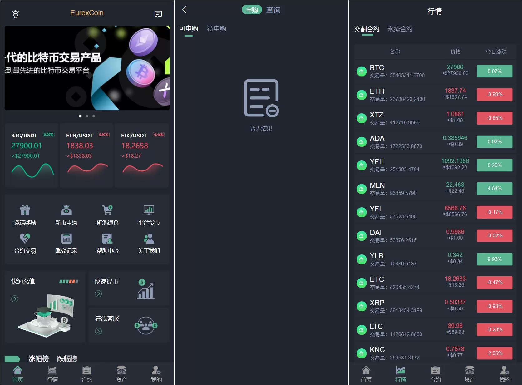 - 本系统适合需要合约交易、理财质押及新币挖矿的交易平台。