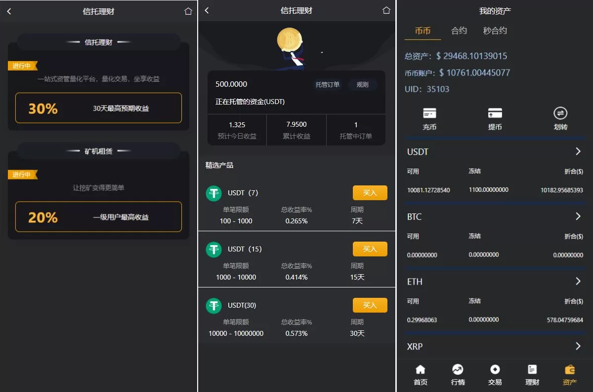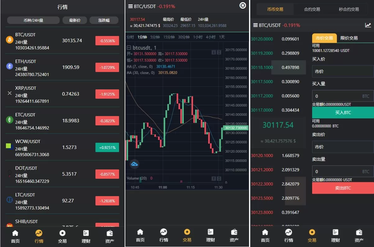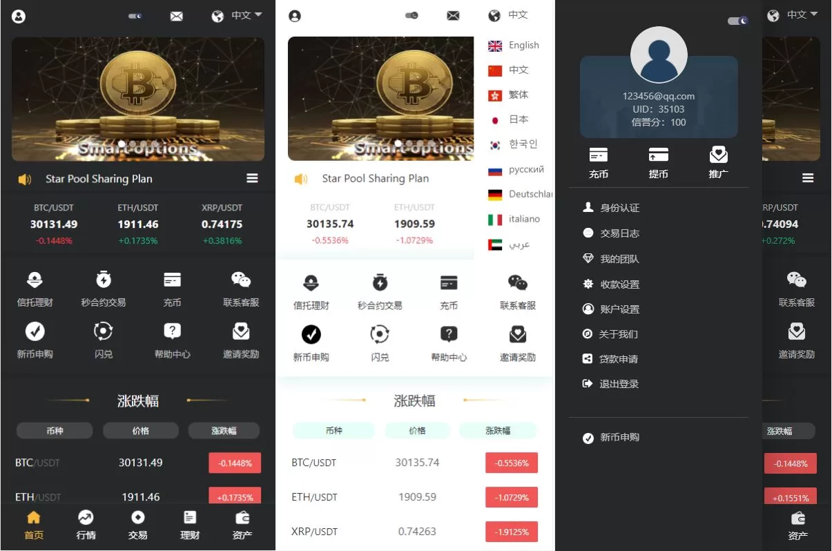 多國語言交易所系统/秒合约交易/理财认购矿机闪兑贷款源码