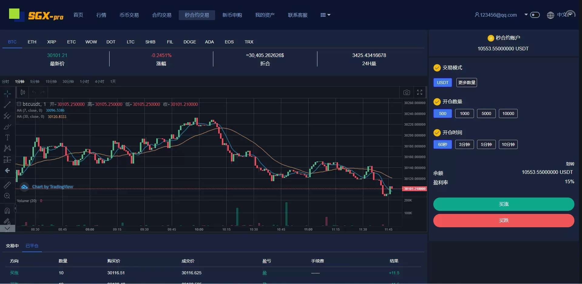 🔹 秒合约交易:系统支持 秒合约交易,适合短期交易者,极大提升交易速度与效率。