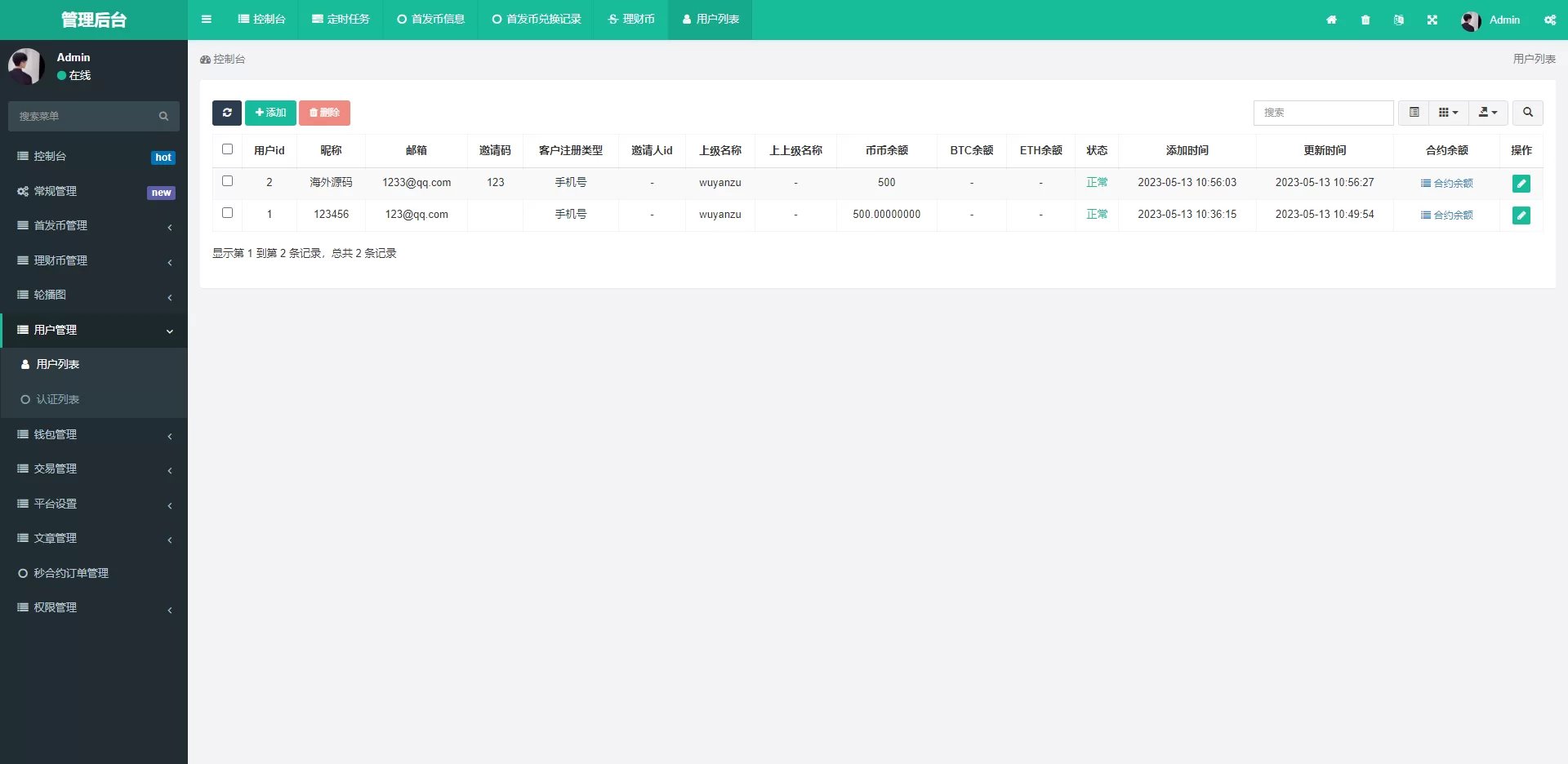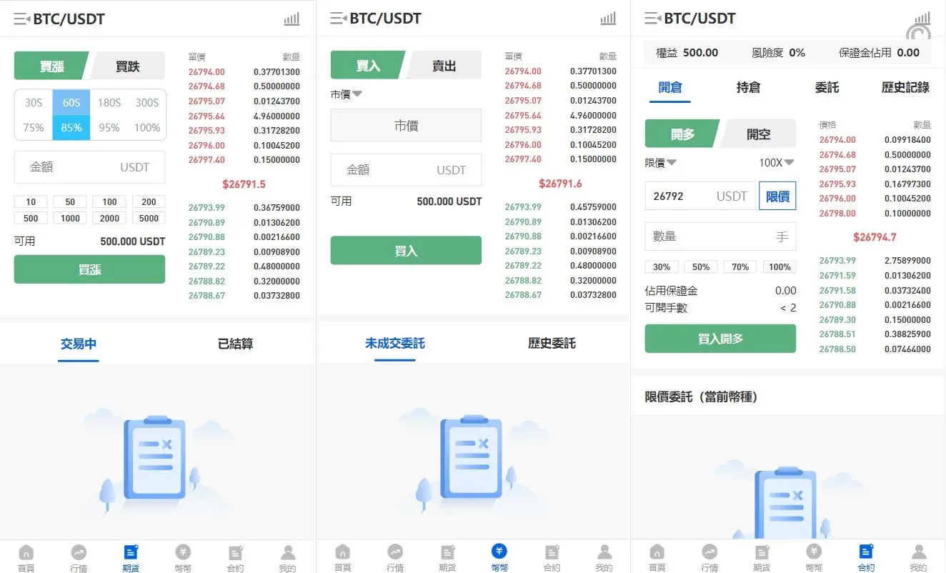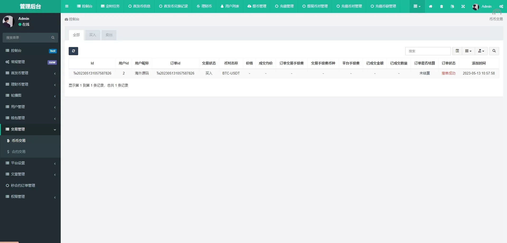 🔹 币币交易与合约交易:系统具备 币币交易、秒合约交易 等常见的交易所功能,满足不同用户的需求。
