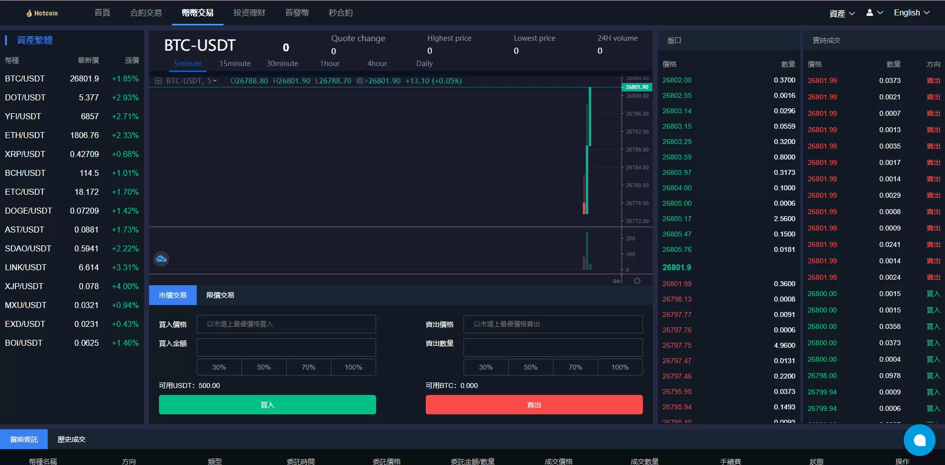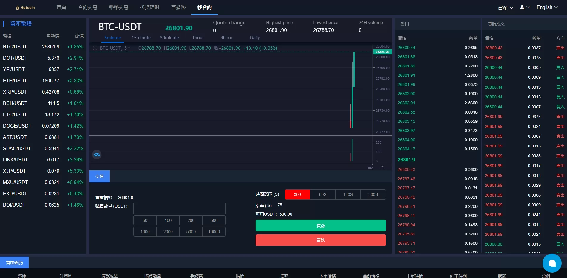 多國語言区块链交易所/币币合约秒合约交易/质押理财源码