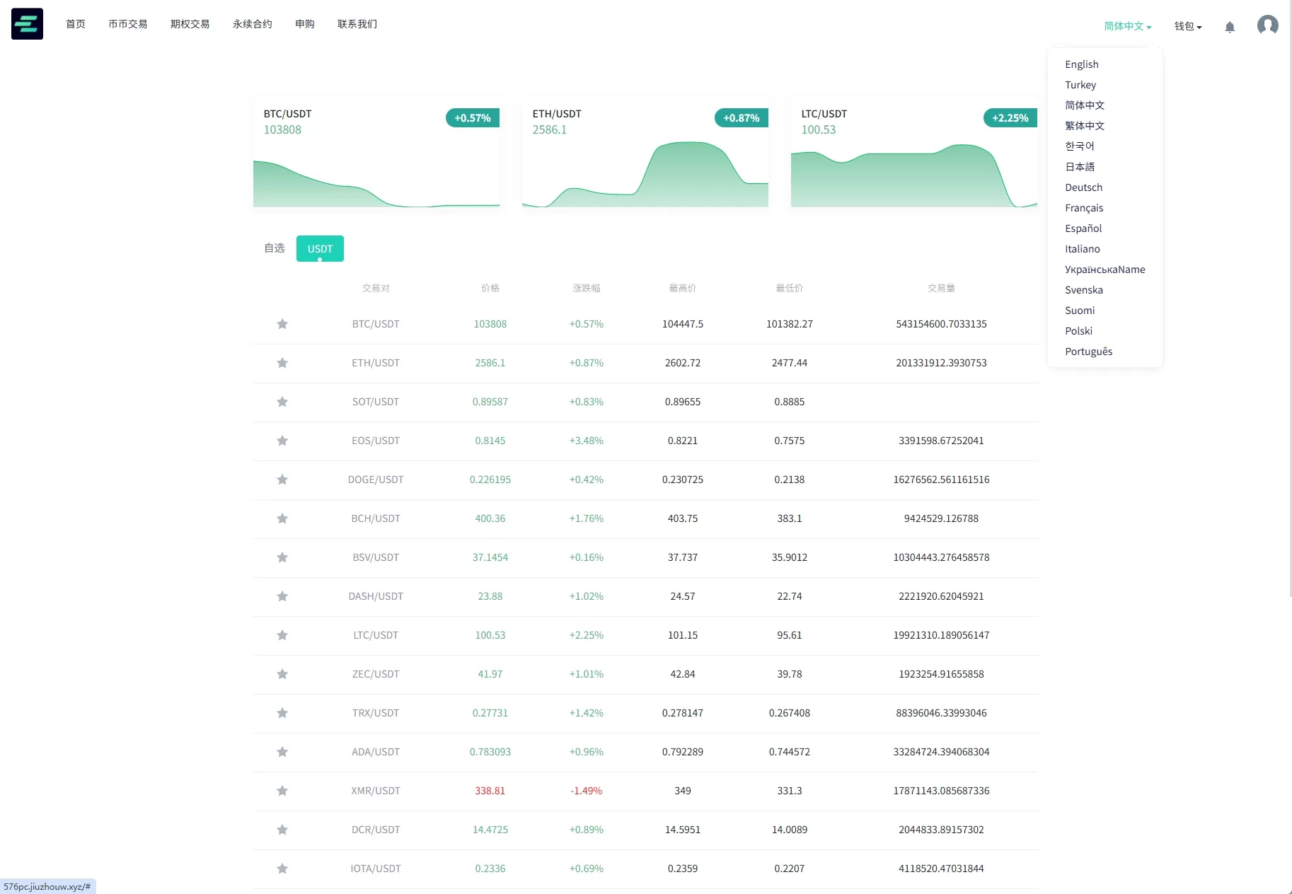 系统适合搭建运营级交易平台,支持多國語言界面切换,满足全球用户需求。