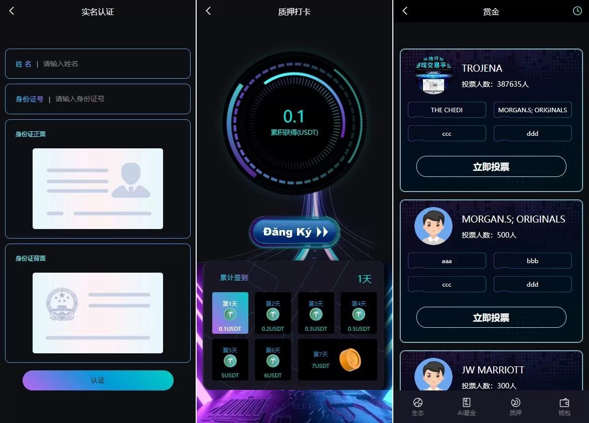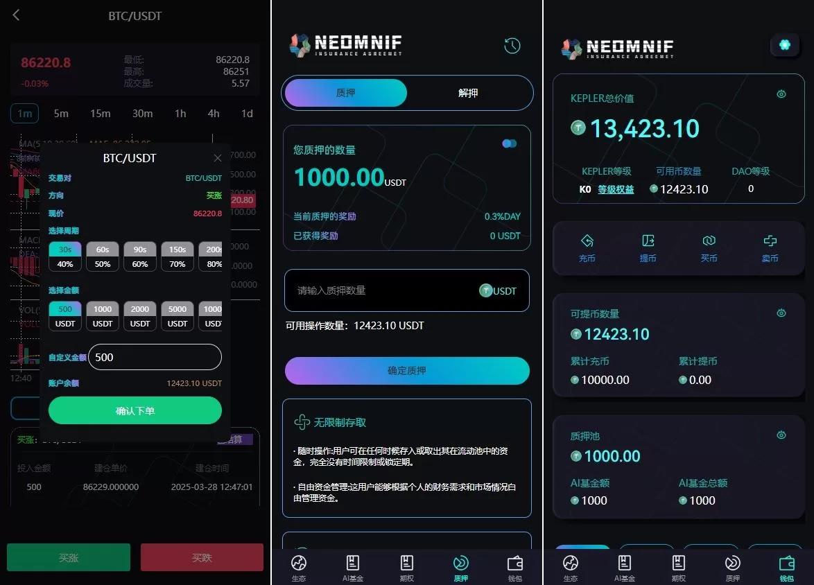 介绍一款综合性数字资产管理平台,集成了质押、AI基金投资、加密货币交易、邀请奖励和社区投票等多种功能,为用户提供全方位的数字资产管理和投资体验。