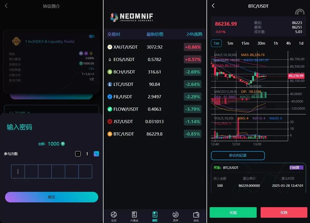 支持主流加密货币交易对(BTC/USDT、ETH/USDT等)。