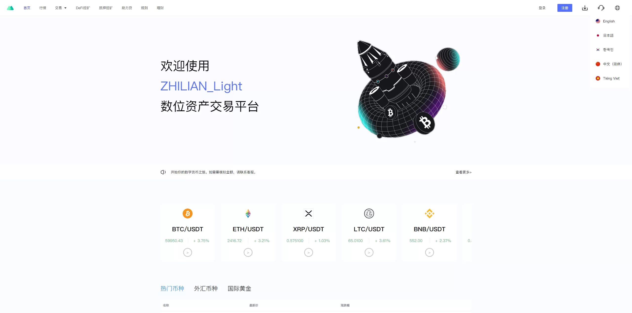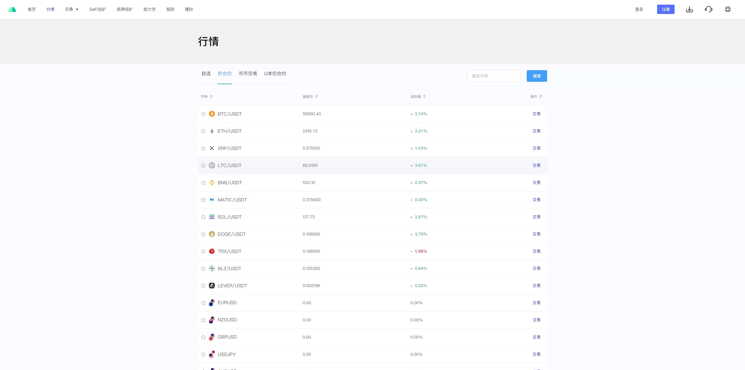 - 币币交易:支持多种虚拟货币的交易。