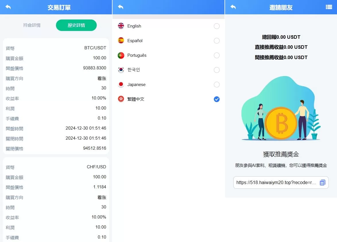 - 秒合约交易:快速执行合约交易,适合短期波动操作。