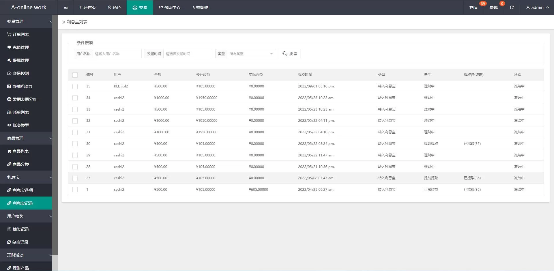 - 余利宝理财系统,提供利息收益,增强用户粘性