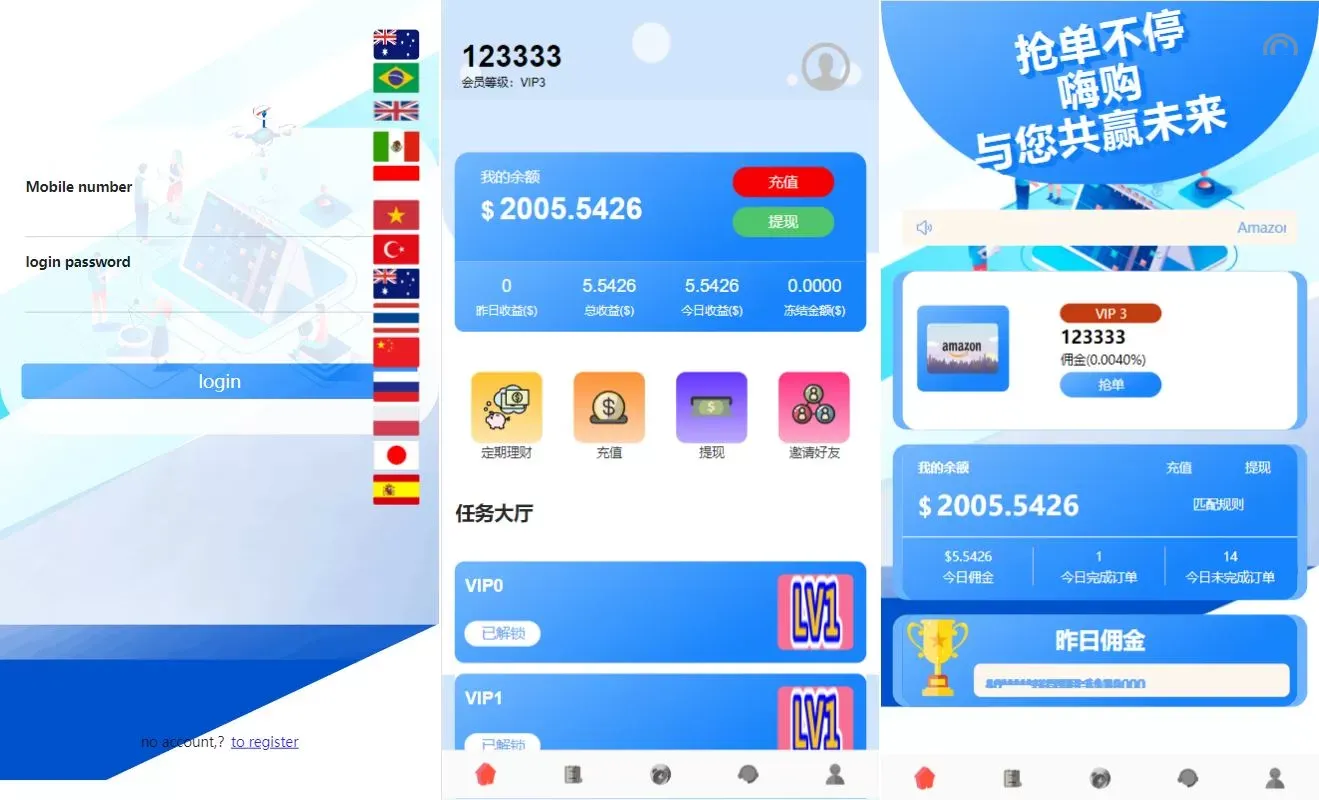 多國語言特惠抢单刷單系统/余额宝/叠加组刷單源码