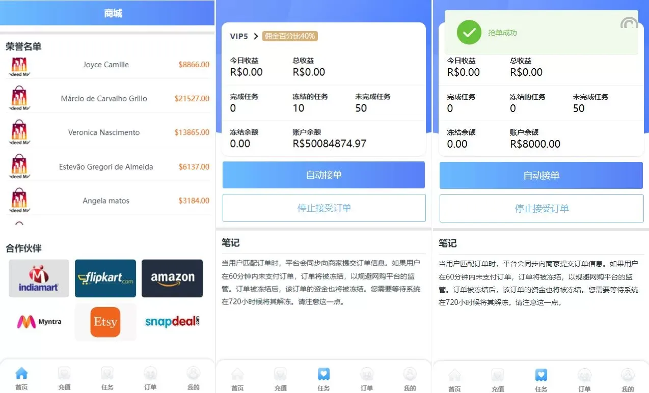 二开版特惠抢单刷單系统源码/分组联单控/订单自动匹配系统 主要功能亮点 ✅ 分组联单控制,智能匹配订单,优化派单逻辑✅ 入职生成功能,支持自定义生成入职信息✅ 订单编辑、续期、解冻,灵活管理订单状态✅ 前端多國語言支持,自带多个语言包,可自由添加✅ 后台可设置默认语言,支持关闭前端语言选择开关✅ 系统稳定高效,运行流畅不卡顿,满足特惠市场需求 📌 强大功能,精准匹配,高效管理,一站式抢单刷單解决方案! 抢单刷单源码