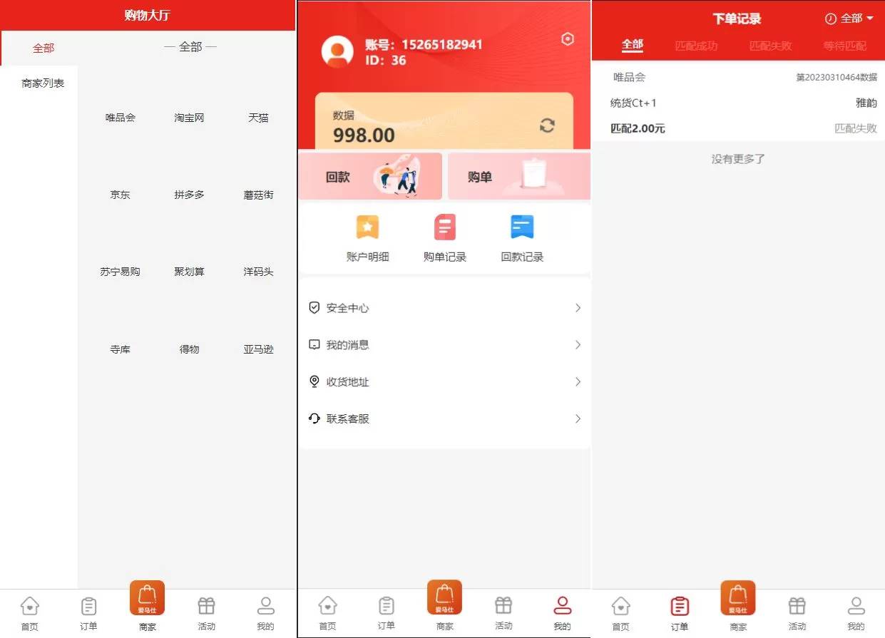 多套UniApp伪商城刷單系统源码/订单自动匹配/代理后台源码