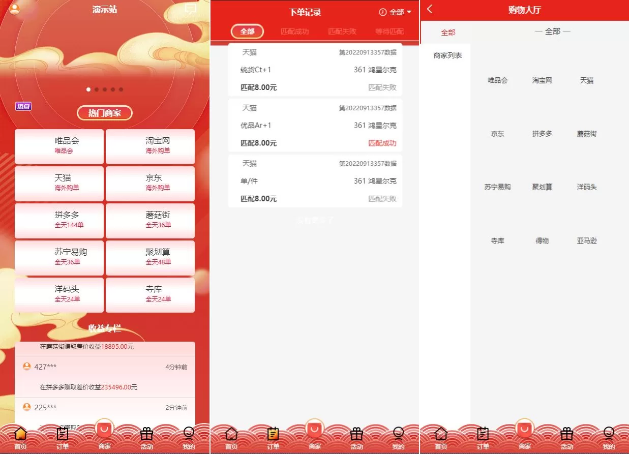 📌 多套前端UI+全开源架构,适用于伪商城刷單及订单匹配业务,支持扩展和二开!