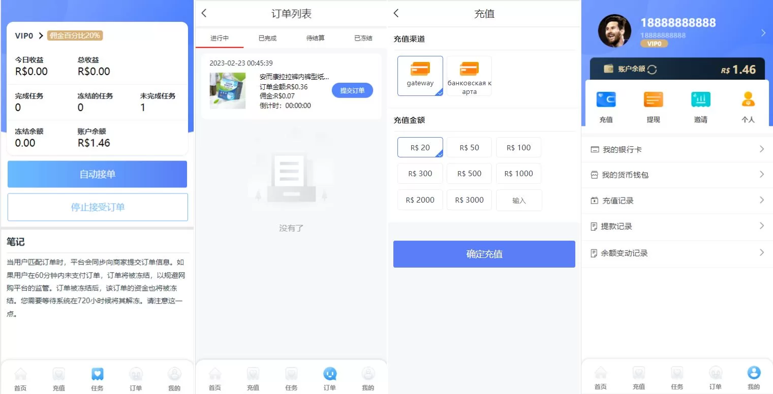 双UI多國語言特惠抢单刷單系统/分组派单/订单自动匹配源码 🌟 主要功能亮点 ✅ 全新二开系统,非以往框架开发,性能更优✅ 前端双UI设计,支持后台自由切换✅ 多國語言支持,后台可设置默认语言(附带多个语言包)✅ 智能订单管理,支持订单待结算、超时冻结、手动解封✅ 分组派单系统,按分组规则派单,未分组时按会员等级匹配 📌 源码全开源,支持二开定制,适合多國語言市场运营! 抢单刷单源码