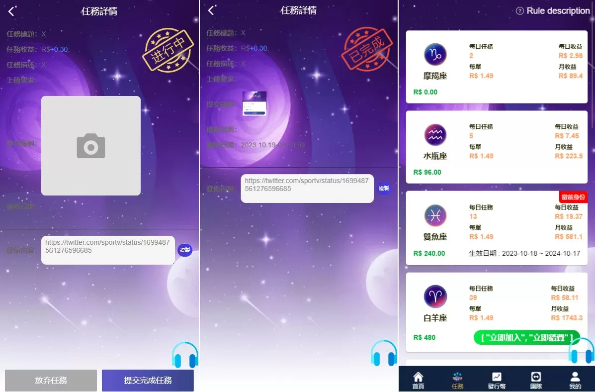 二开版特惠任务系统源码/TIKTOK脸书任务平台/星座投资 主要功能亮点: 🚀 前端Vue开发,源码全开源,支持多國語言(默认隐藏,可自行修改)。🌟 二开全新UI,任务模式改为星座投资玩法,界面焕然一新。📌 基于特惠任务点赞系统二开,适配TIKTOK、脸书等社交平台。⚡ 系统简单易懂,用户操作便捷,裂变速度极快,适合快速推广。 💡 全新玩法+多國語言支持,深度二开可定制,满足全球市场需求! 0 抢单刷单源码