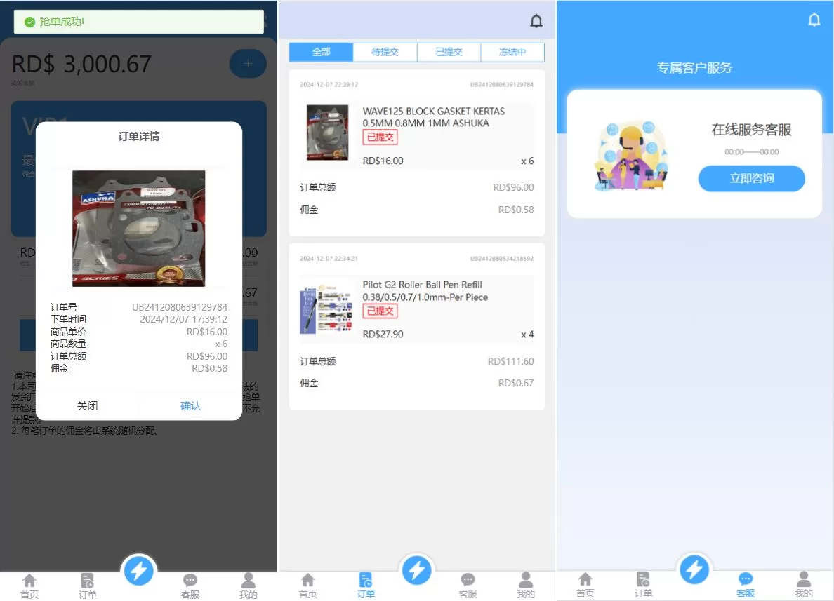 多國語言亚马逊抢单刷單系统源码/订单控/余额宝 主要功能亮点: 前端VUE开发,界面自适应,交互流畅 后端PHP全开源,功能可二开定制 系统后端全新定制,新增多项功能 支持多國語言,适配特惠市场需求 订单控、余额宝等核心功能,增强用户体验 抢单刷单源码