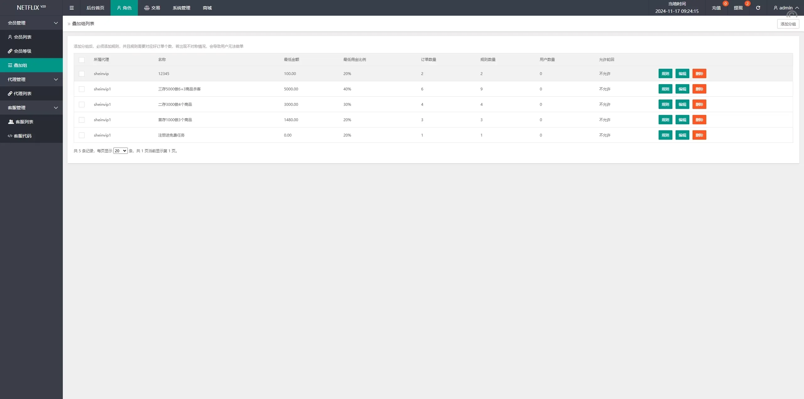 特惠影视刷單搶單系統/多國語言刷單/打针/叠加组源码 主要功能亮点: 前端UI定制二开,支持13国语言,适应多种市场需求 系统专为影视刷單设计,具备打针、叠加组等功能 后台支持产品自行添加,灵活配置各类商品 提供全面的刷單与抢单功能,提升用户体验 抢单刷单源码
