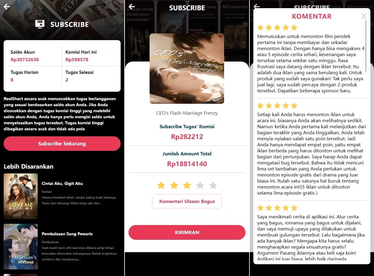 亲测ReelShort短句刷單系统/印尼视频刷單/連單卡單源码 🌟 主要功能亮点 🌟 亲测ReelShort短句刷單系统,专为印尼市场定制 前端使用uniapp开发,支持印尼语言,适配手机与电脑端 后端基于thinkphp框架,全开源,带完整的前端源码 提交订单时用户可选择点击星级评价或选择评论内容 系统支持連單卡單功能,完美支持刷單操作 提供稳定高效的系统架构,增强用户体验 抢单刷单源码