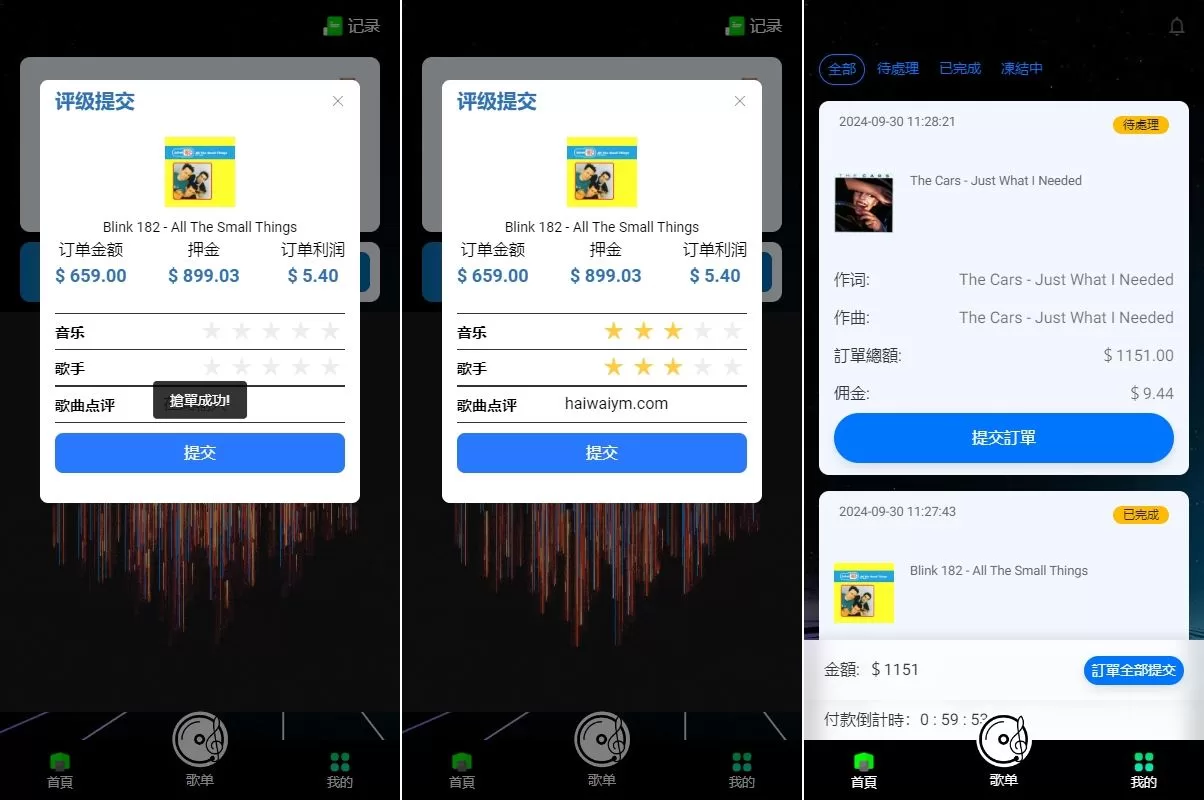 特惠多國語言音乐抢单刷單系统/派单連單卡單/打针/实名认证源码 🌟 主要功能亮点 🌟 二开版音乐刷單搶單系統,前端支持多國語言 连单功能支持自定义佣金设置,灵活操作 新增实名认证功能,增强用户安全性 支持打针、卡单等功能,提升操作便捷性 派单功能优化,系统更加高效 全开源源码,方便二次开发与功能定制 抢单刷单源码