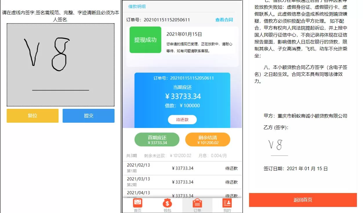 前台提交申请贷款支持手写签名等功能