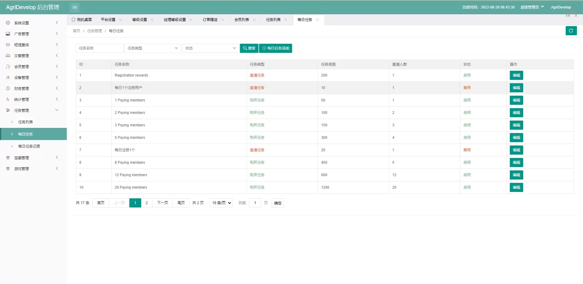 ✅ 灵活的任务设置和奖励机制,管理员可以灵活配置任务内容和奖励