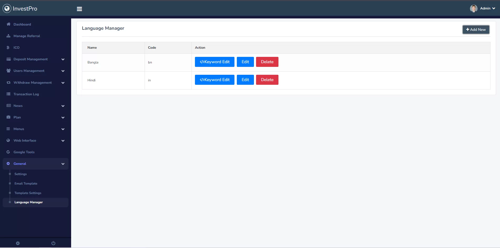 一款国外的多國語言投资分红系统,默认支持三种语言,后台支持添加其他语言,源码自适应