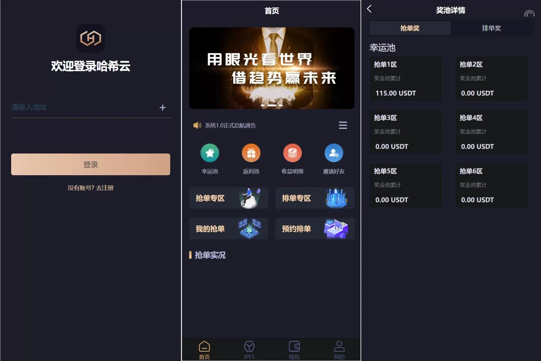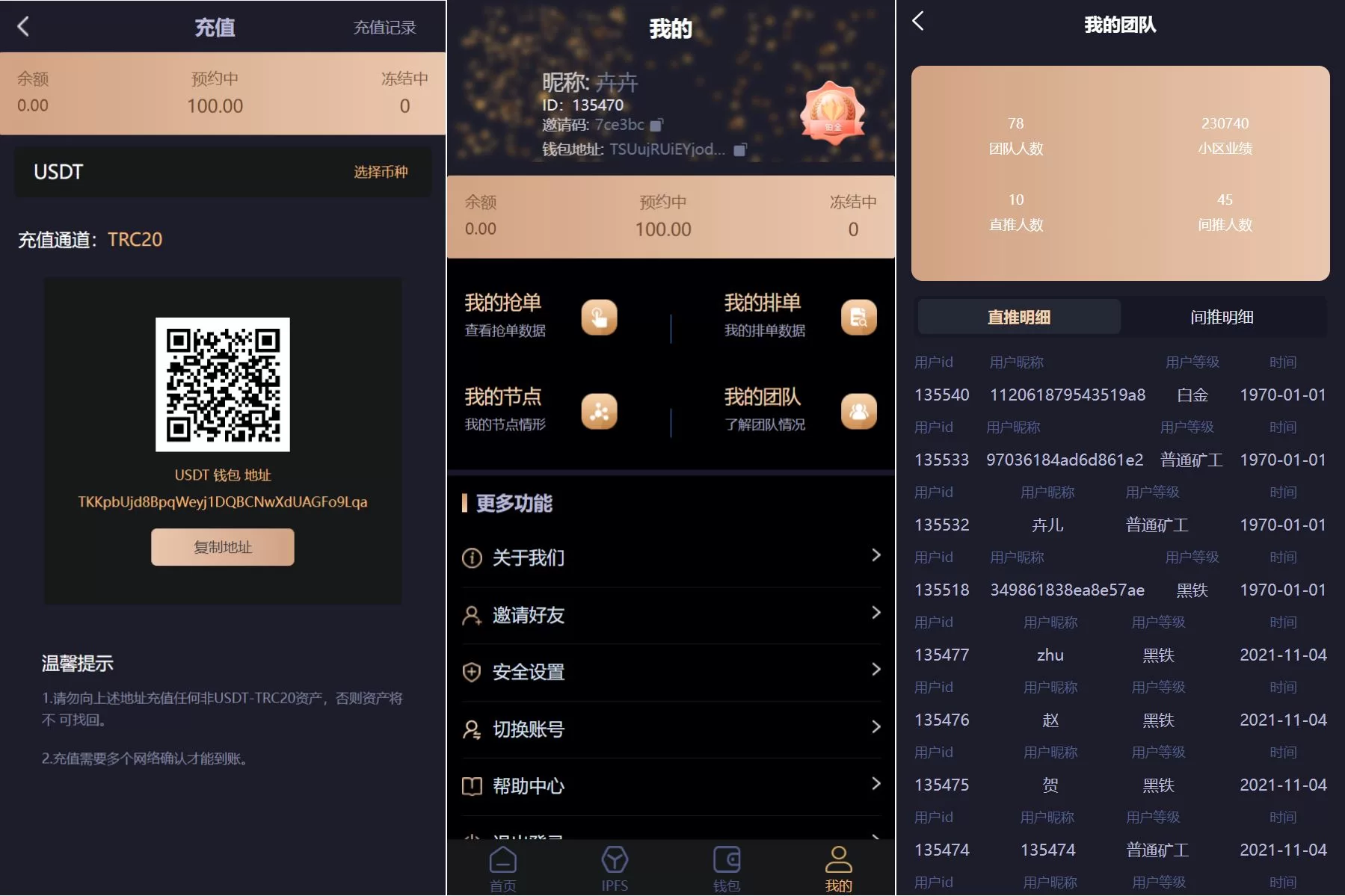 IPFS算力矿机系统源码——USDT排单众筹与理财分红平台