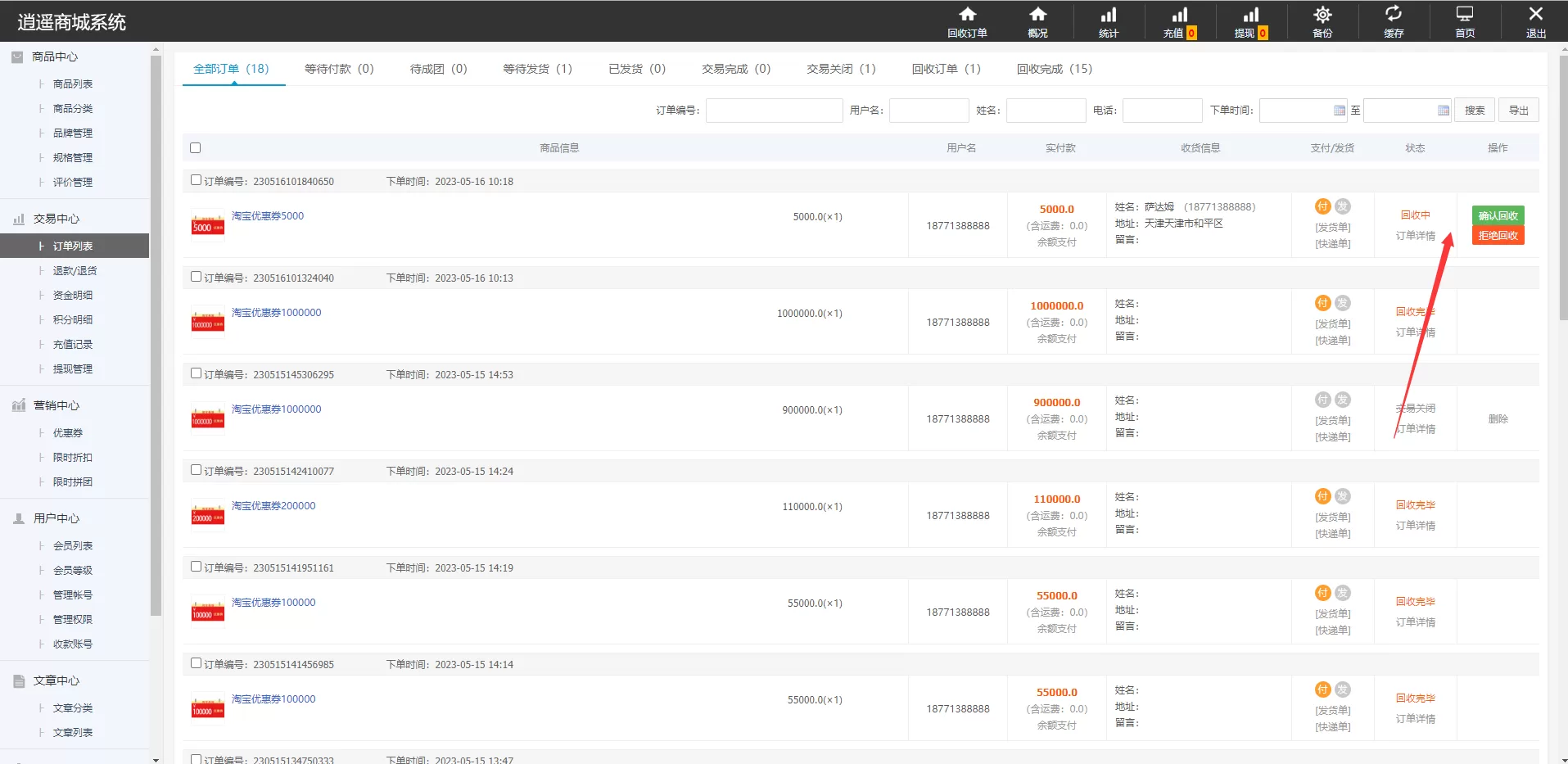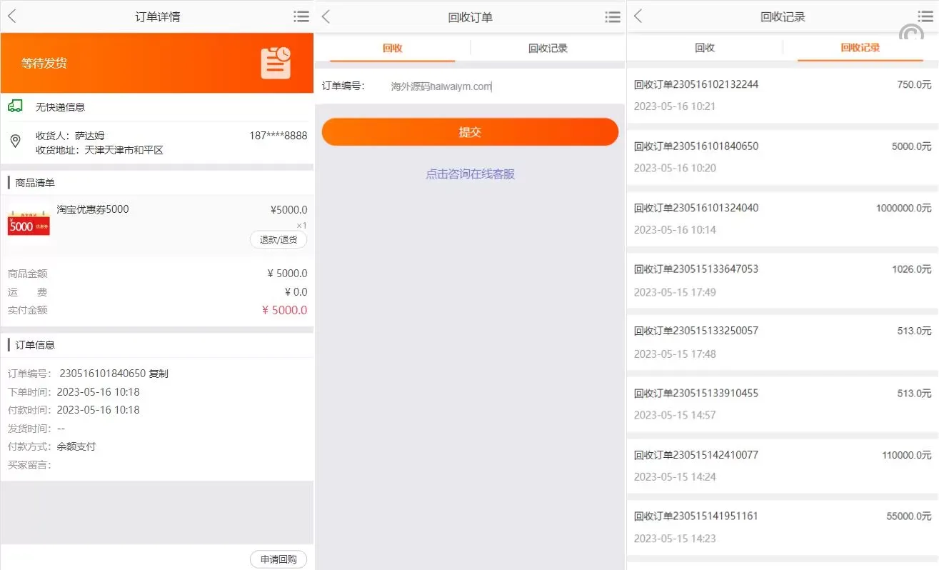 ✅ 订单回收功能:前台提交的订单可直接回收,便于用户管理与操作