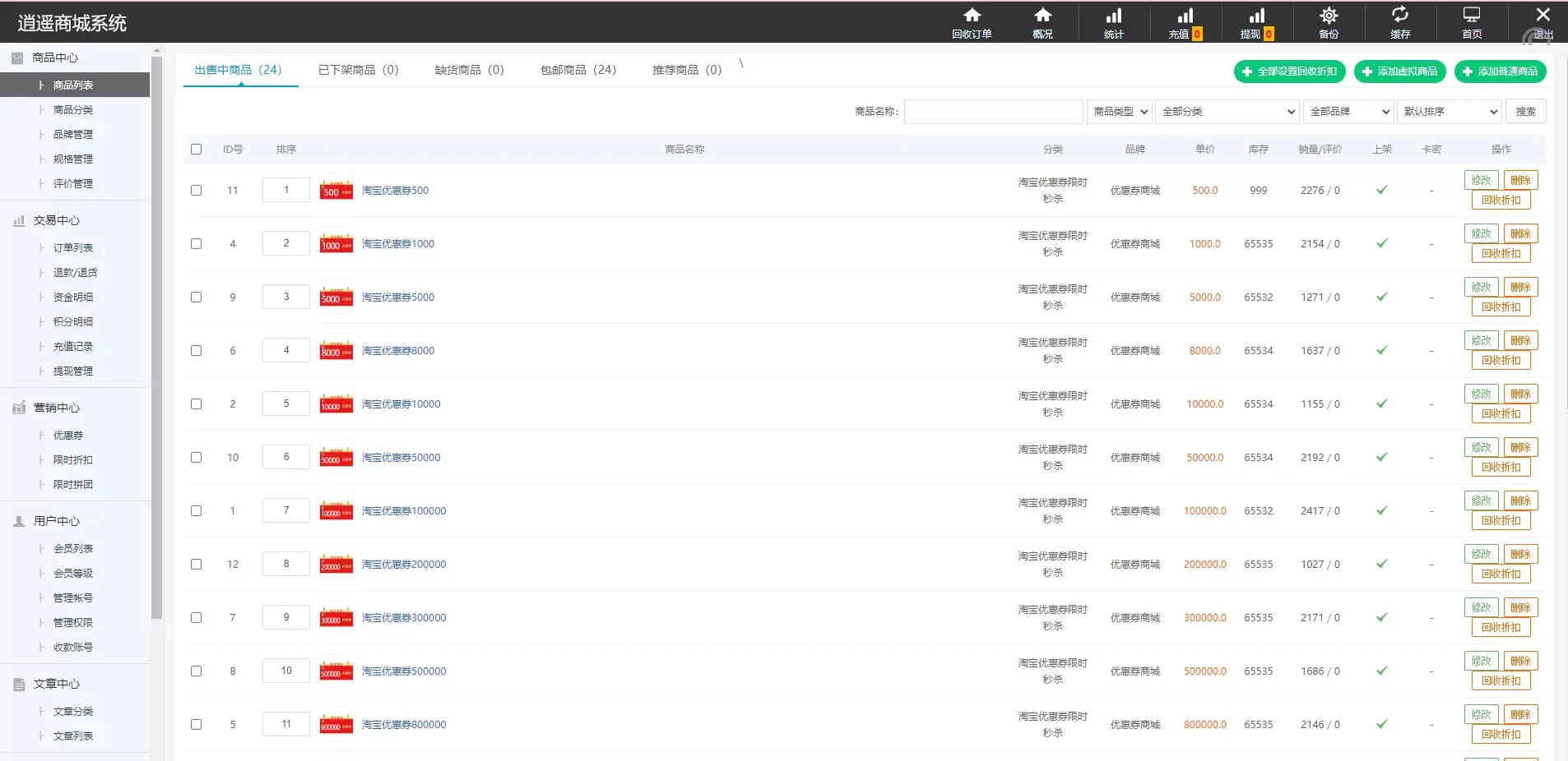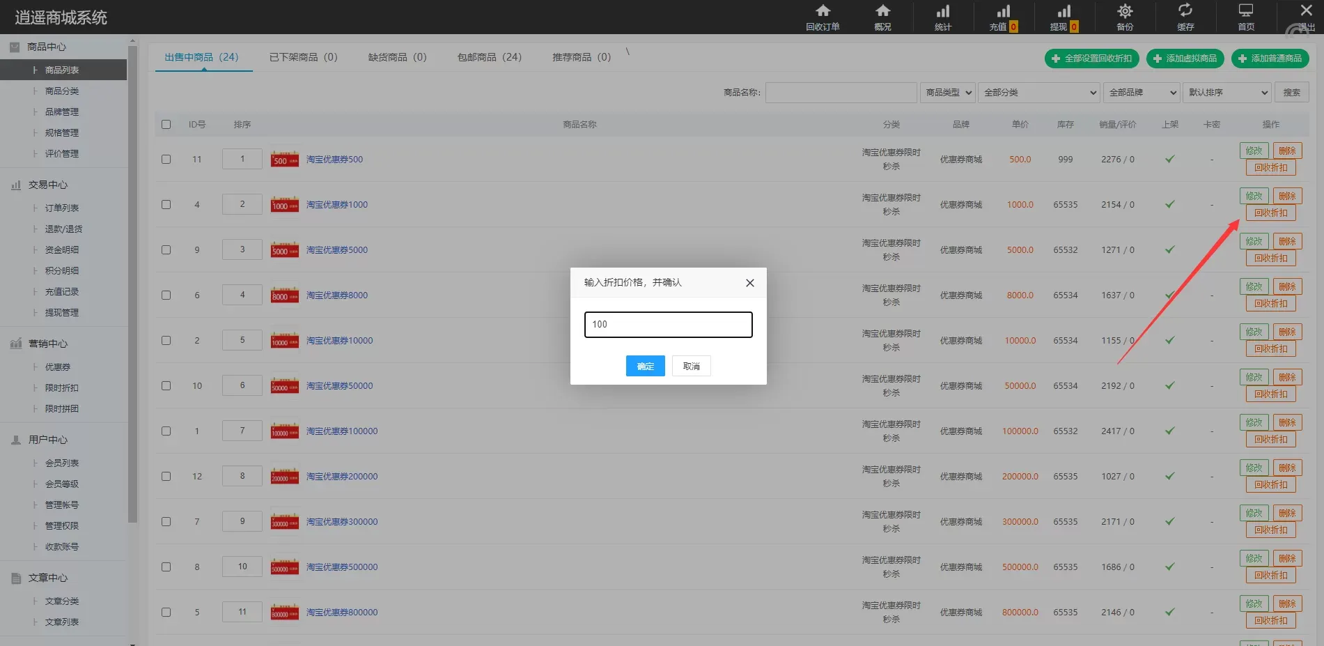 ✅ 商品回收折扣设置:每个商品可以单独设置回收折扣,灵活调整策略