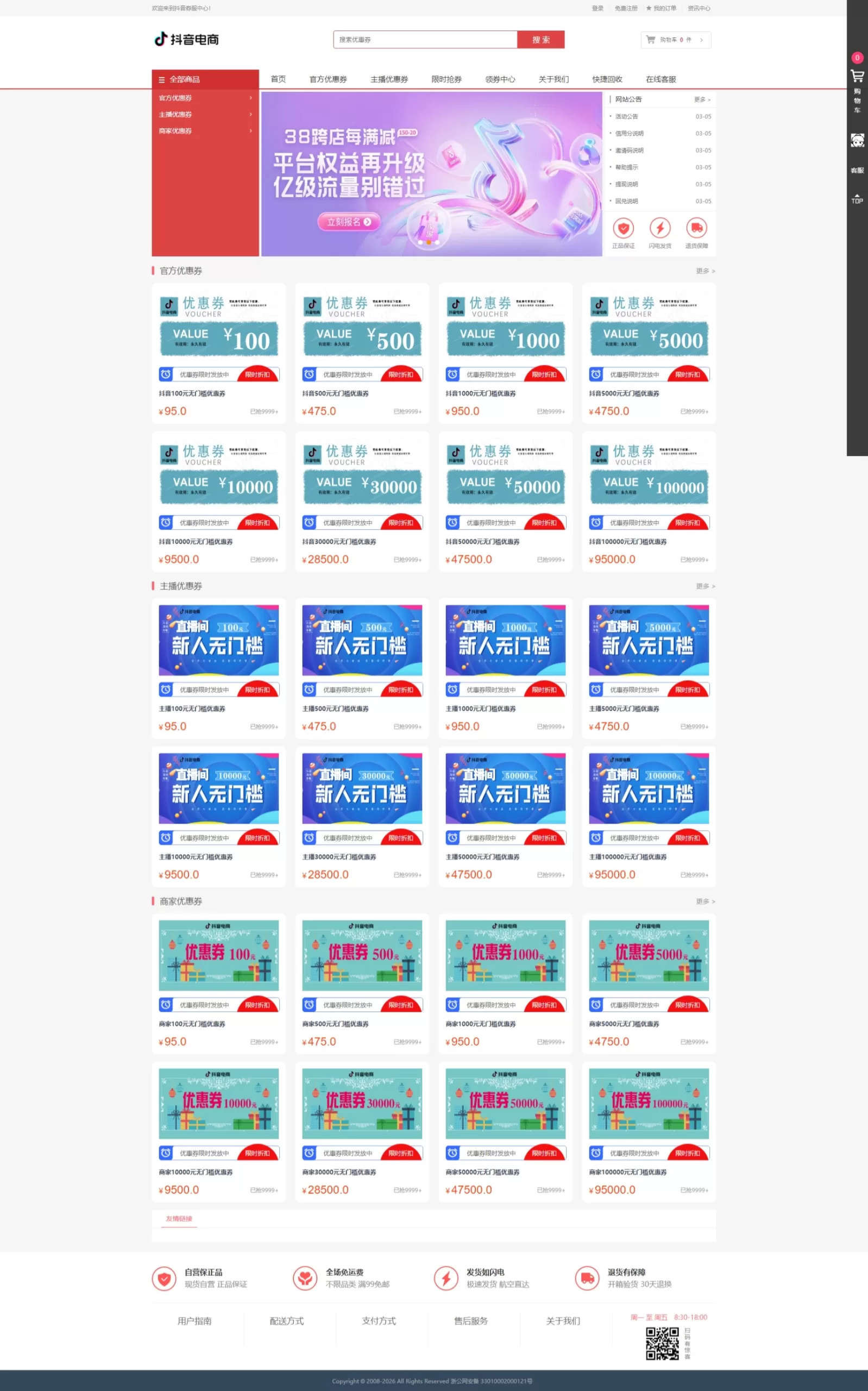 抖音卷系统/抖音电商卷抢购回收/电商投资理财源码 主要功能亮点 ✅ 基于逍遥商城二开系统,适用于抖音电商卷抢购与回收✅ 手机端全新定制UI,提升用户体验,支持多种产品定制✅ 新增邀请码验证功能,确保用户真实有效✅ 后台支持订单回收功能,用户前端下单后,后台可直接回收✅ 可自定义产品,不仅限于抖音卷,其他电商产品也可灵活修改✅ 设置抢卷时间限制,后台可调整默认邀请码及时间规则 📌 此系统专为抖音电商业务设计,适合投资理财及电商卷回收业务,支持灵活定制与扩展功能。 项目投资理财