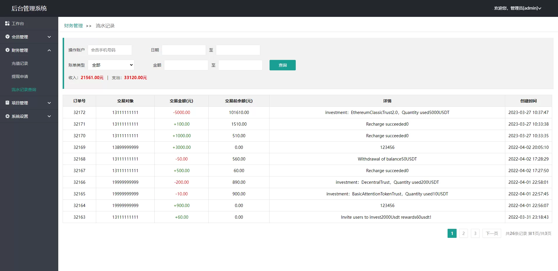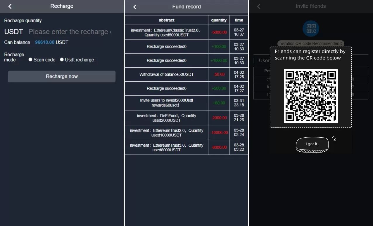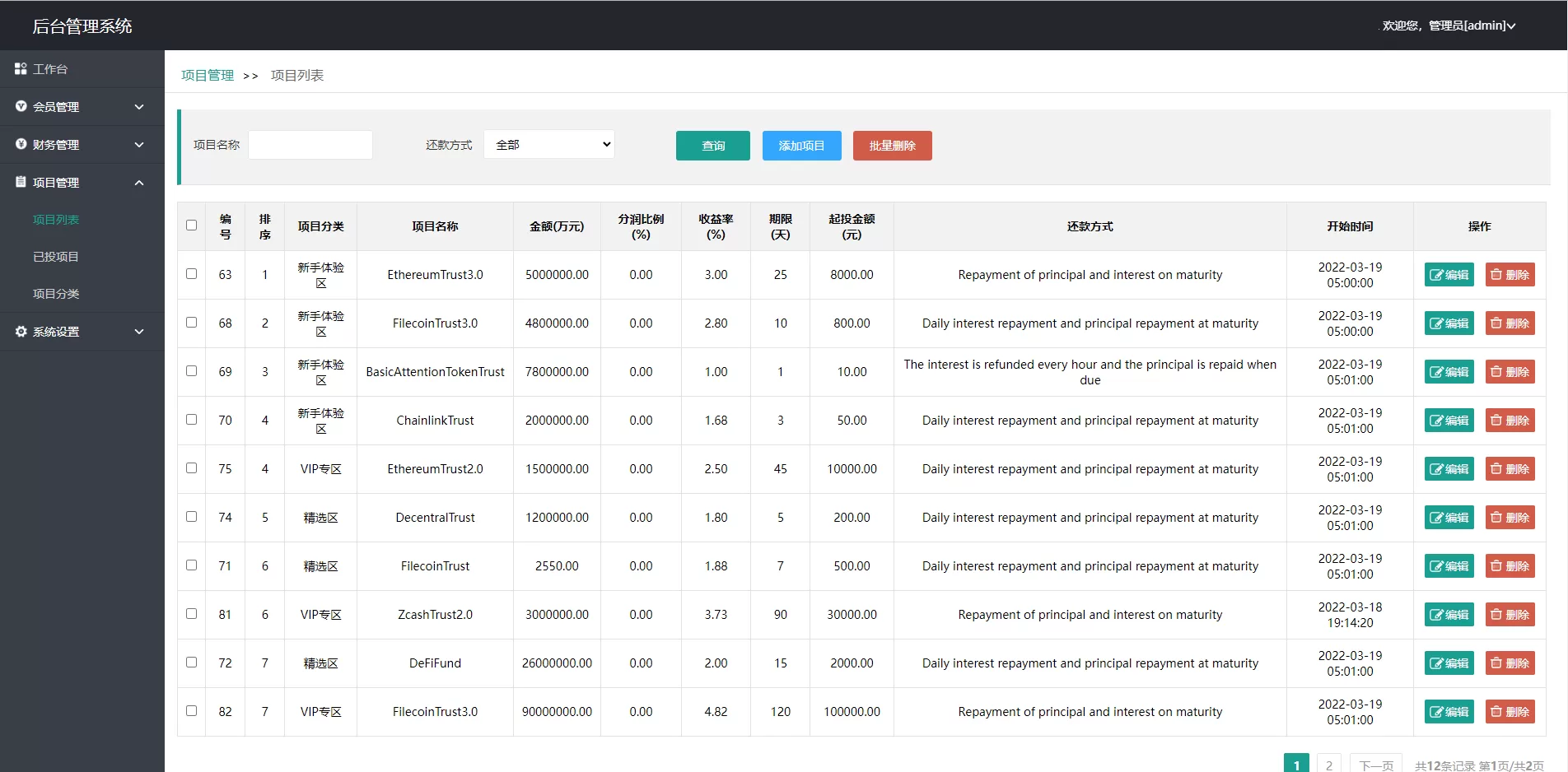 运营版特惠资金盘系统源码/投资理财众筹系统源码/投资理财源码 主要功能亮点 ✅ 特惠投资系统,已在客户运营下使用,功能成熟稳定✅ 前端产品可根据需求进行灵活更改,满足不同市场需求✅ 支持英文前端,且可二开其他语言以扩展国际化✅ 充值支持USDT,充值操作需后台手动审核,确保安全✅ 多样化的投资理财功能,满足不同投资需求 📌 一套成熟的特惠资金盘系统,适用于投资理财、众筹等场景! 精品源码 项目投资理财