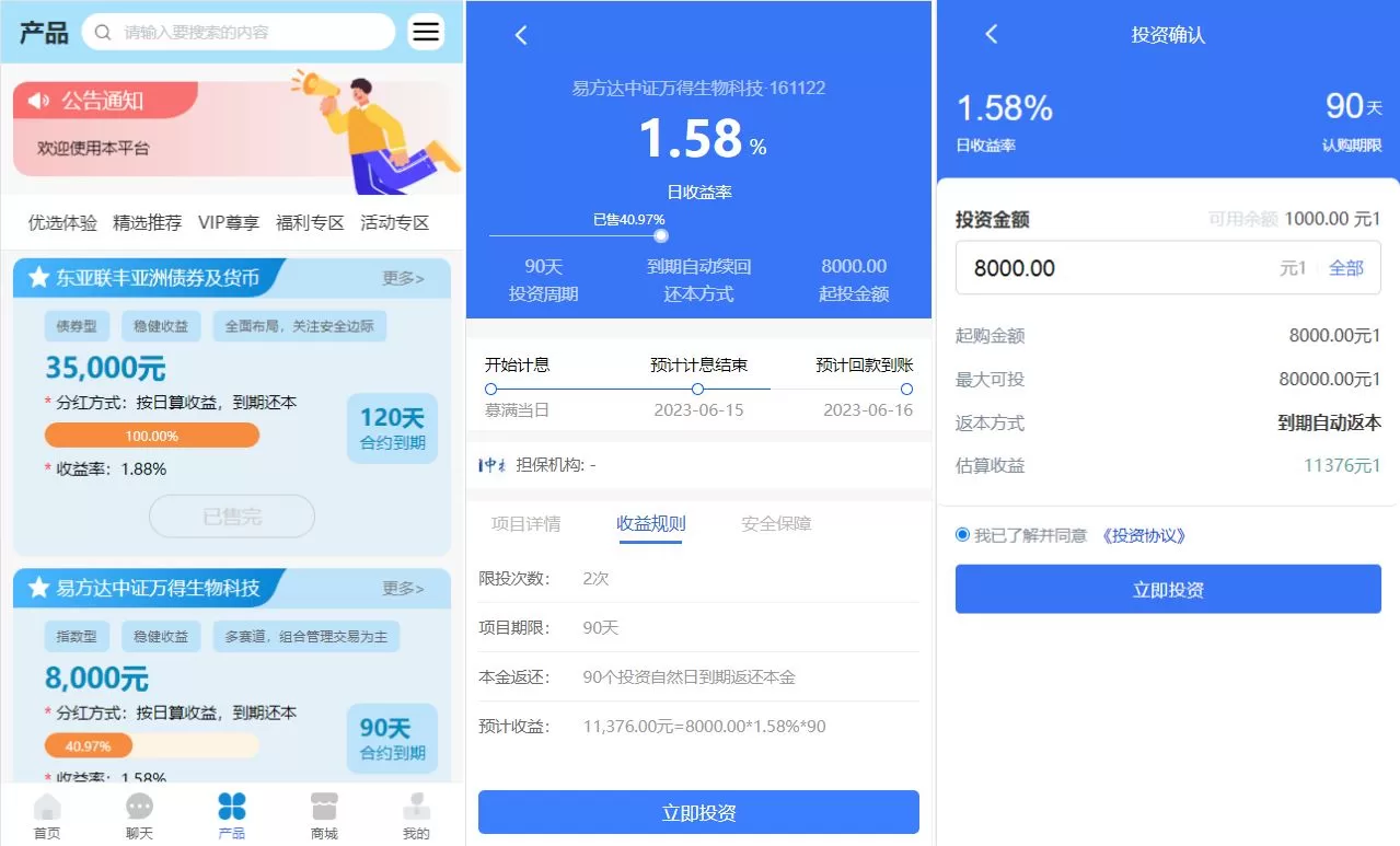 全新投资理财系统源码/项目众筹平台/自带IM即时通讯 主要功能亮点 ✅ ThinkPHP框架 + HTML前端,稳定高效,二开方便✅ 自带IM即时通讯,支持APP内好友添加、实时交流✅ 多行业适用:项目投资、影视投资、基金、外汇、USDT等✅ 支持多國語言,适用于特惠市场运营✅ 理财项目智能匹配,优化投资流程,提高用户体验 📌 专业投资众筹系统,高效管理投资项目,拓展全球市场! 精品源码 项目投资理财
