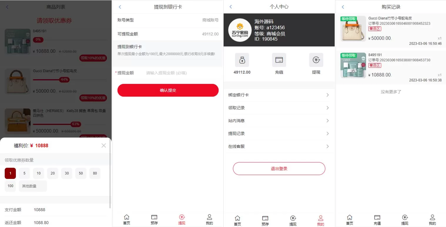 全新苏宁易购优惠券投资系统/奢侈品投资理财源码 主要功能亮点 ✅ 全新开发,基于FastAdmin框架,运行流畅稳定✅ 优惠券投资模式,会员注册后联系客户充值,后台可单独添加会员活动✅ 前端会员可领取优惠券并进行投资,收益模式灵活可调✅ 系统全开源,支持二次开发及定制 📌 适用于苏宁易购模式的优惠券投资及奢侈品投资理财,系统稳定,易扩展! 项目投资理财