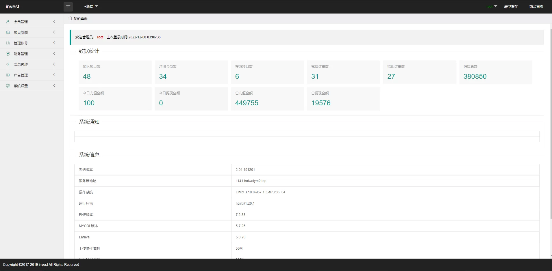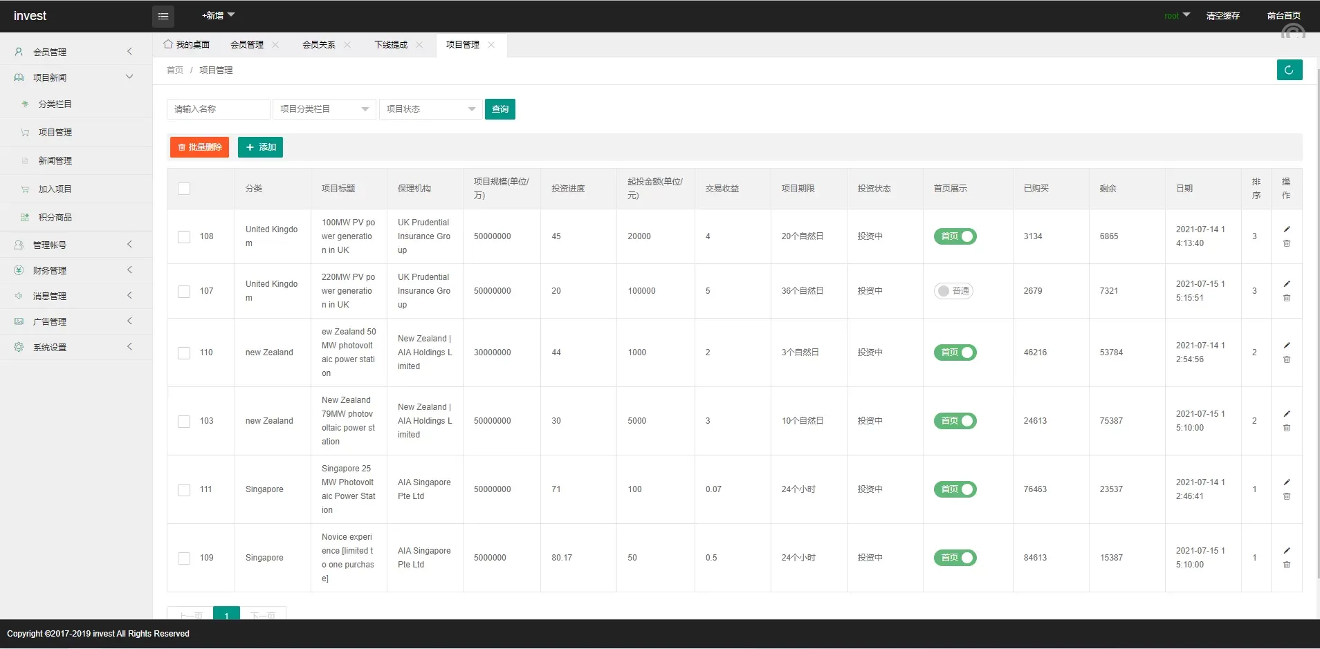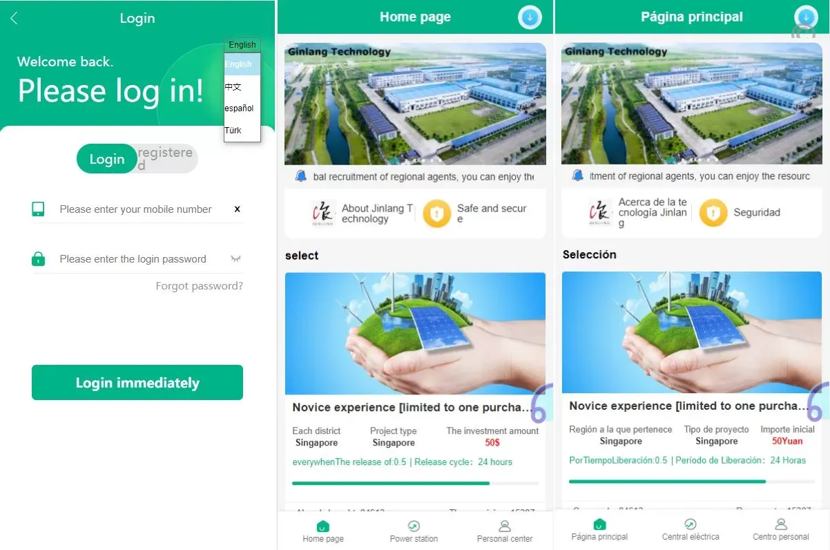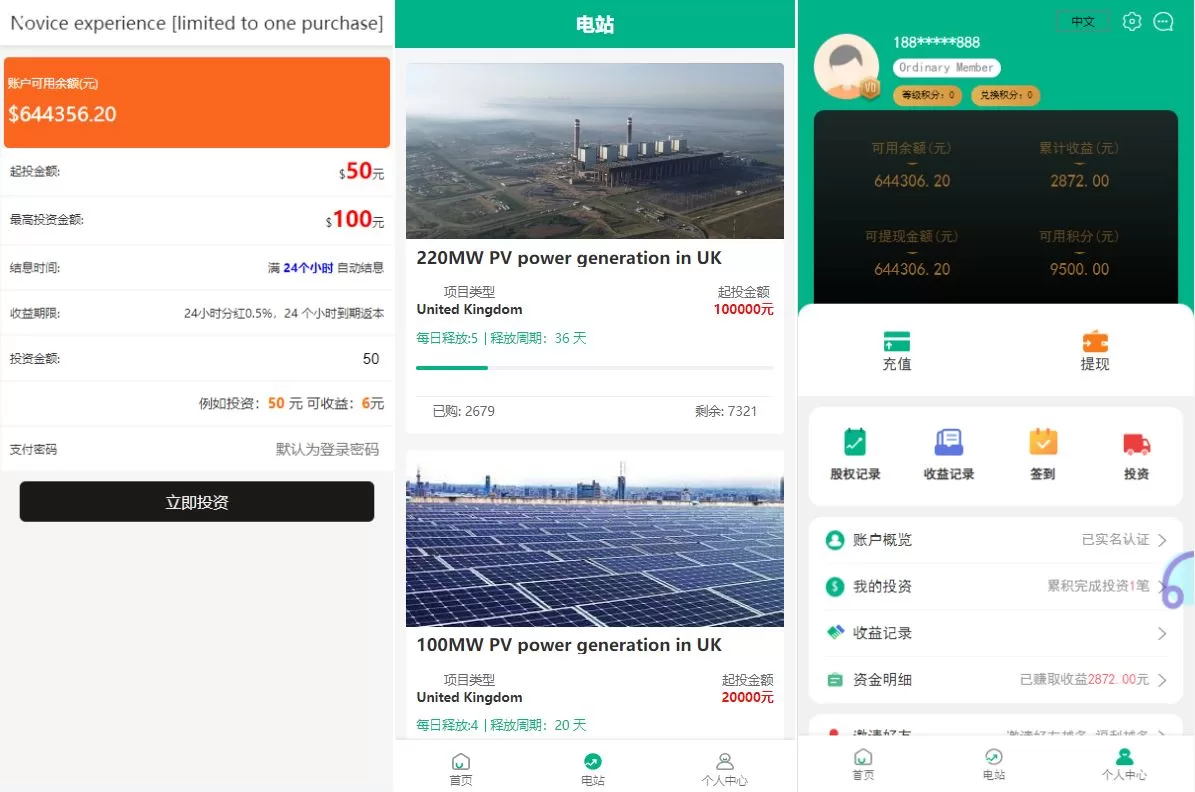 多國語言光伏电站投资系统/特惠项目投资源码 🌟 主要功能亮点 ✅ Laravel框架:系统采用Laravel开发,稳定安全,支持高并发✅ 多國語言支持:后台可自由设置默认语言,适配不同国家市场✅ 多种投资模式:划分不同收益项目,用户可选择最优方案✅ 光伏电站投资:支持购买电站份额,按周期获取收益✅ 分红模式灵活:支持每小时、每日、每周、每月返息等多种收益方式✅ 早投资早收益:适用于长期稳定运营,盈利模式清晰 📌 系统经过优化,适用于特惠市场,支持长期投资理财运营! 项目投资理财