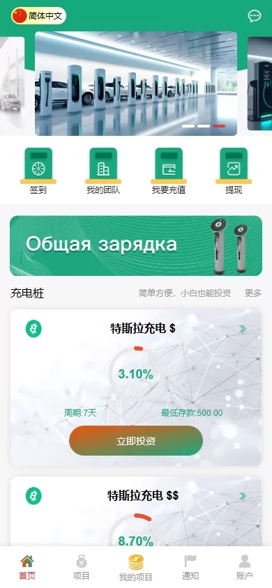 新UI新能源充电桩投资系统源码 – 特惠投资理财与多國語言支持