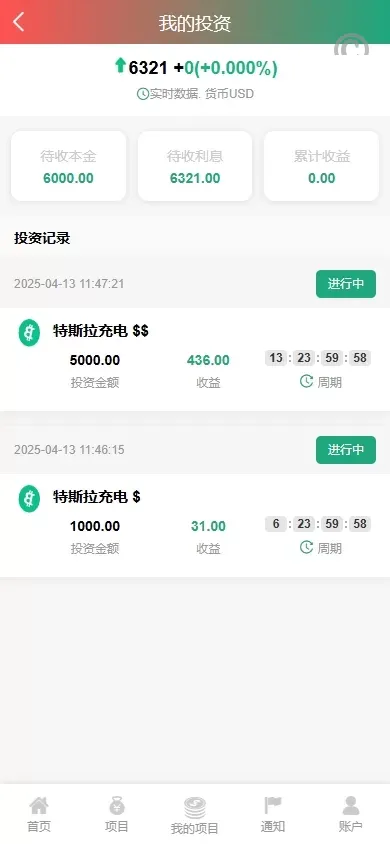 该系统支持用户投资新能源充电桩项目,获取稳定的投资回报,并提供详细的资金管理和收益统计功能,帮助投资者实时查看资产增值情况。系统还支持多國語言切换,满足不同地区用户需求,适用于特惠投资理财平台。
