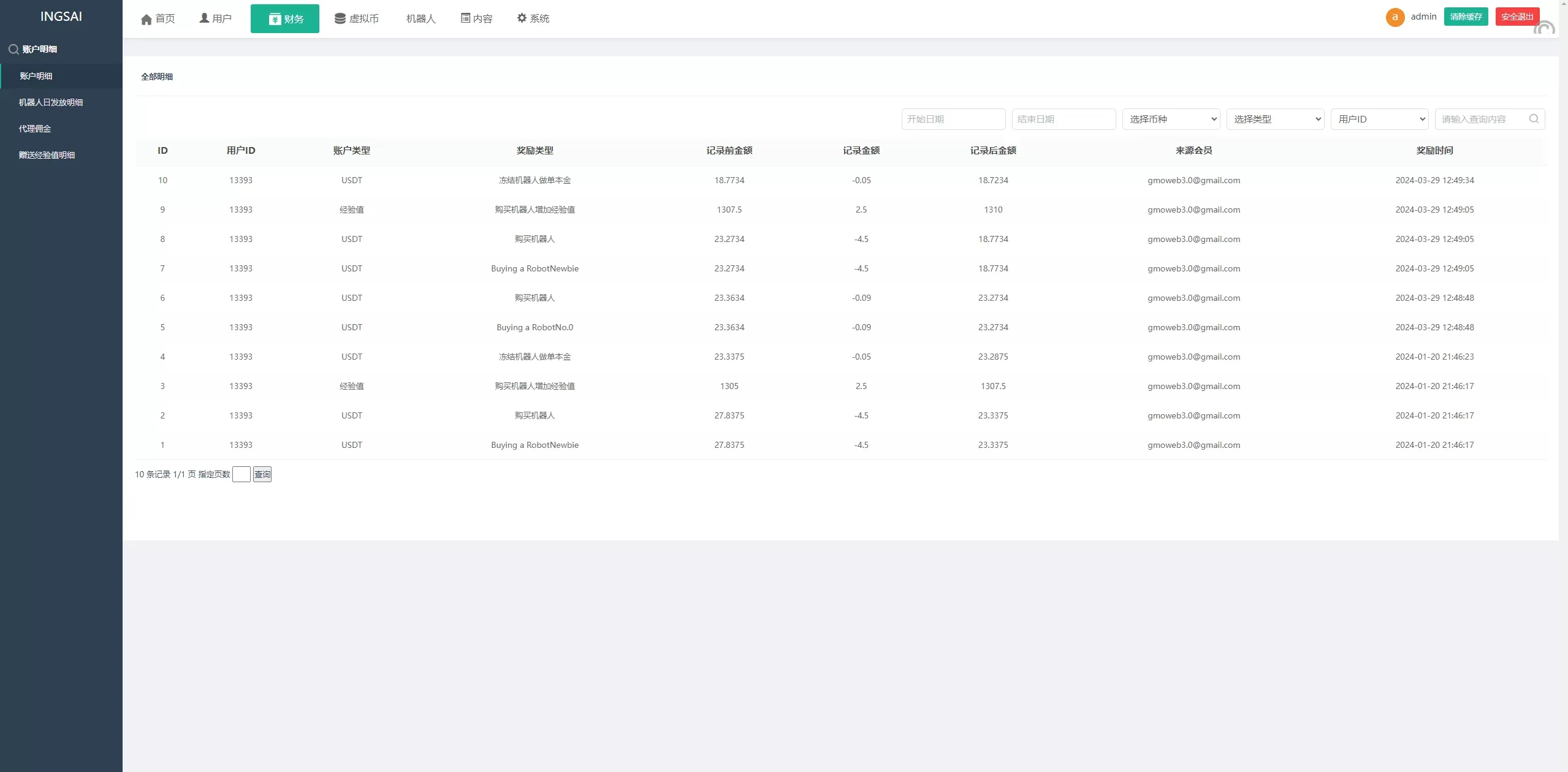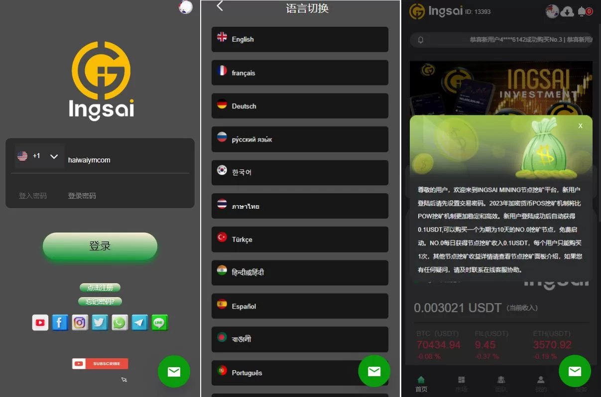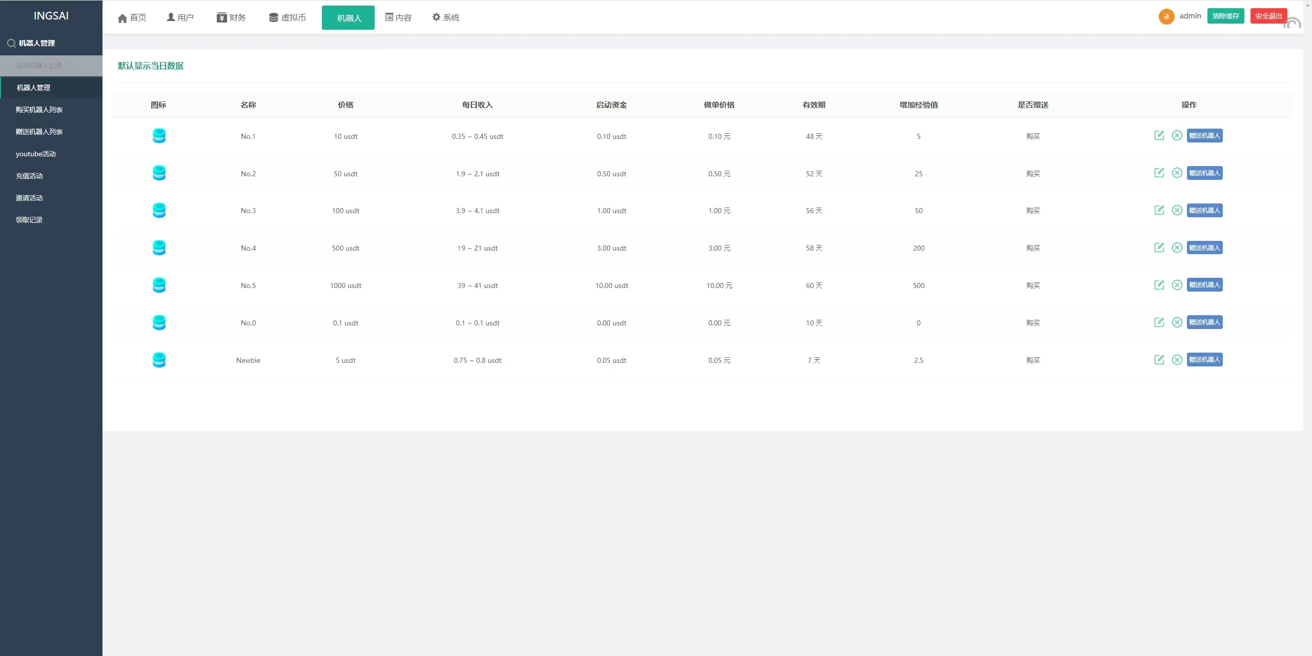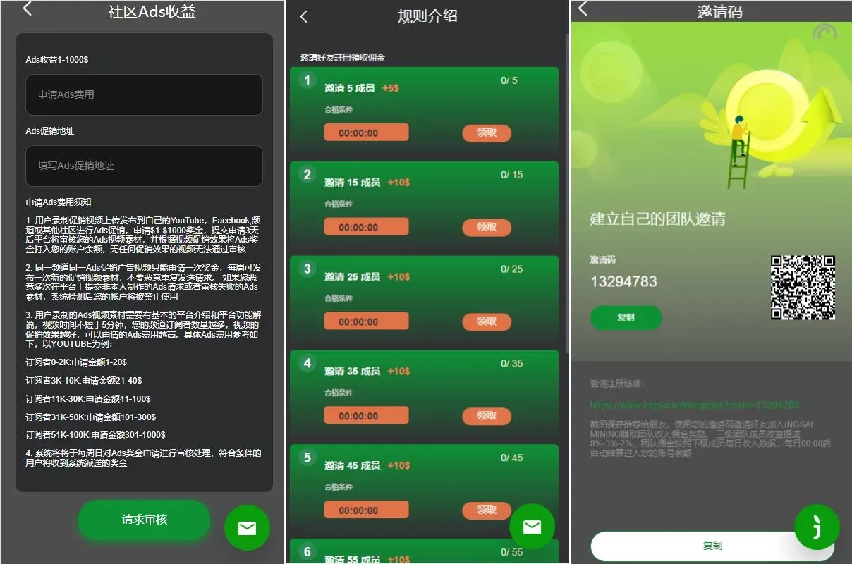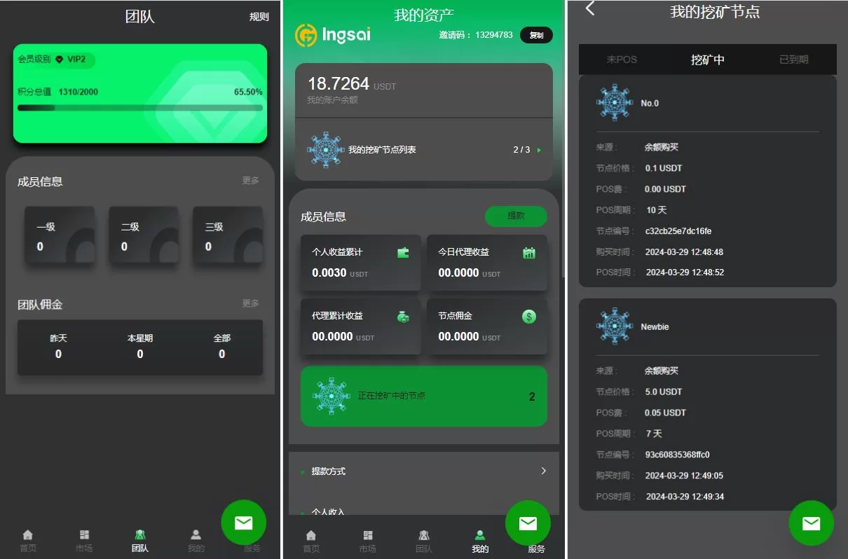 🔹 投资挖矿功能:系统集成了 虚拟币挖矿 和 投资挖矿 功能,用户可参与不同形式的投资和挖矿,获取收益。