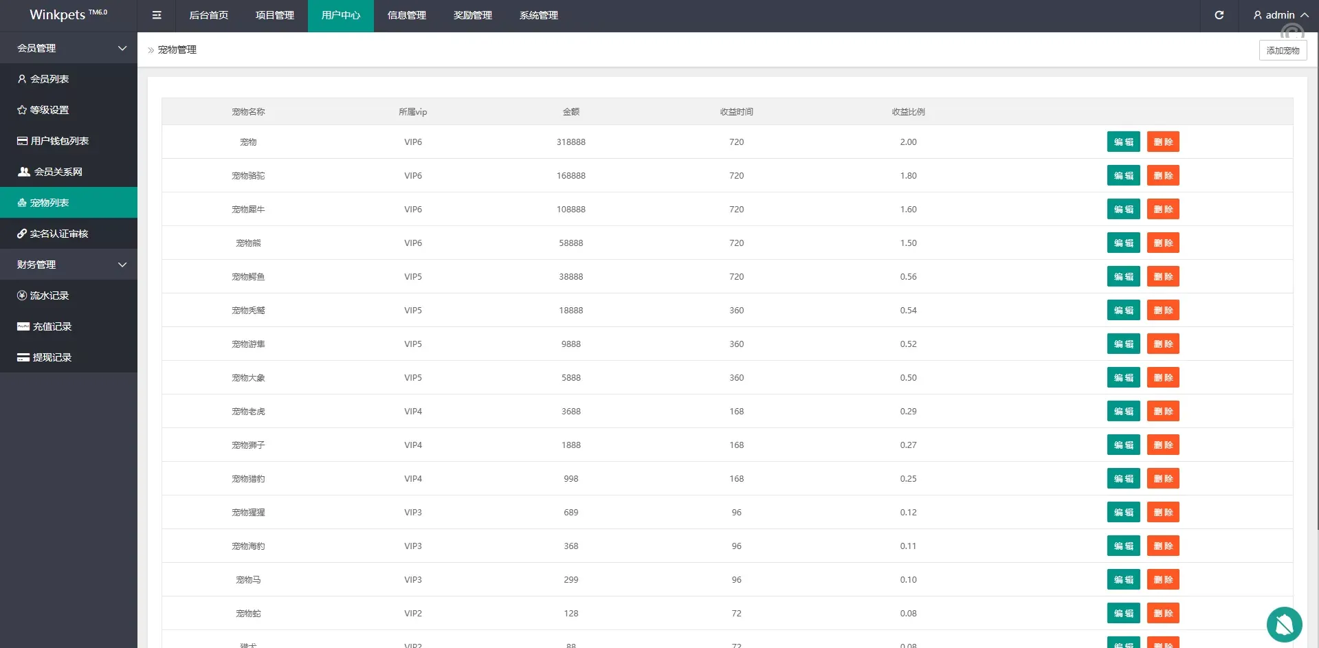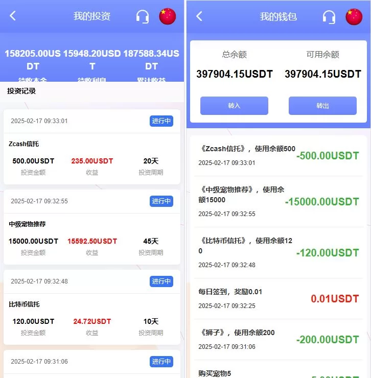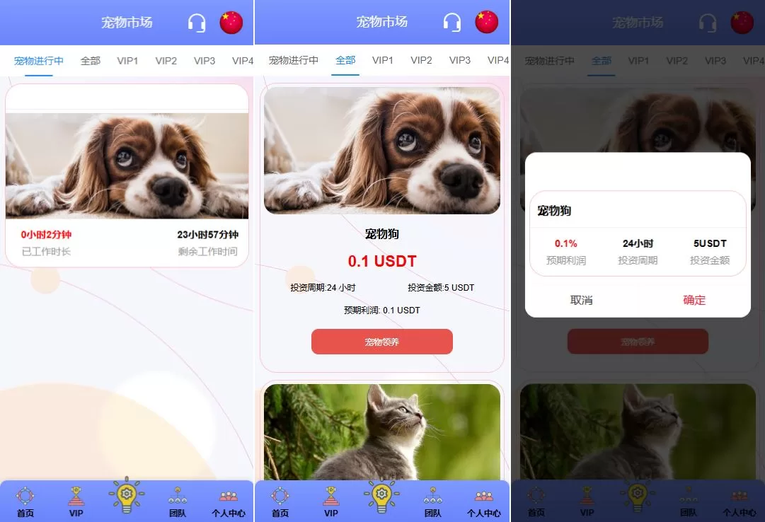 特惠宠物投资理财系统源码/多國語言投资源码/前端VUE 主要功能亮点: 前端VUE开发,提供流畅的用户体验,支持多國語言 后端PHP开发,全开源并附带详细教程 系统功能:支持单独项目投资管理 会员等级:根据用户级别提供宠物领养投资奖励 多國語言支持,适配不同语言用户,提升国际化体验 项目投资理财