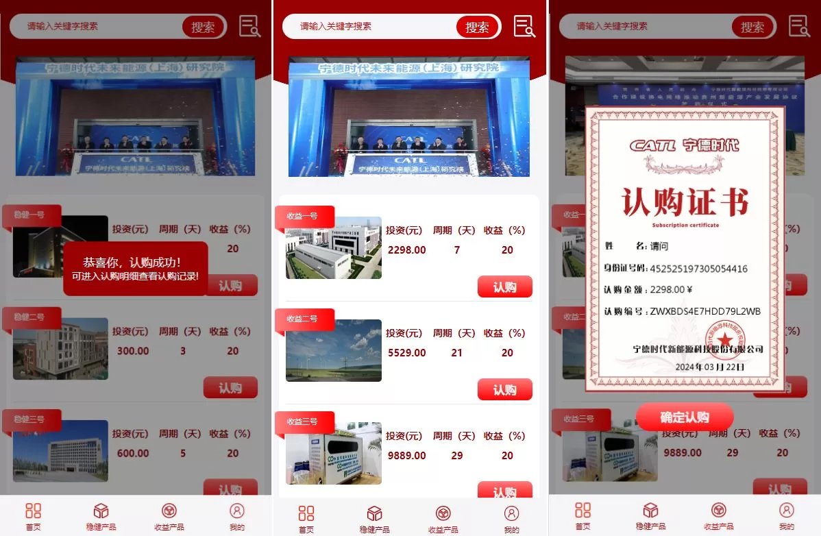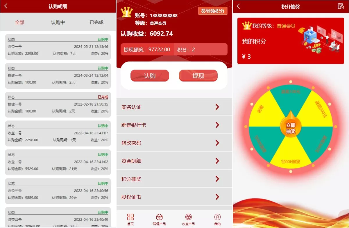 💼 投资认购理财系统:全新UI设计,用户可以进行投资认购与理财,支持多种投资产品与众筹模式。