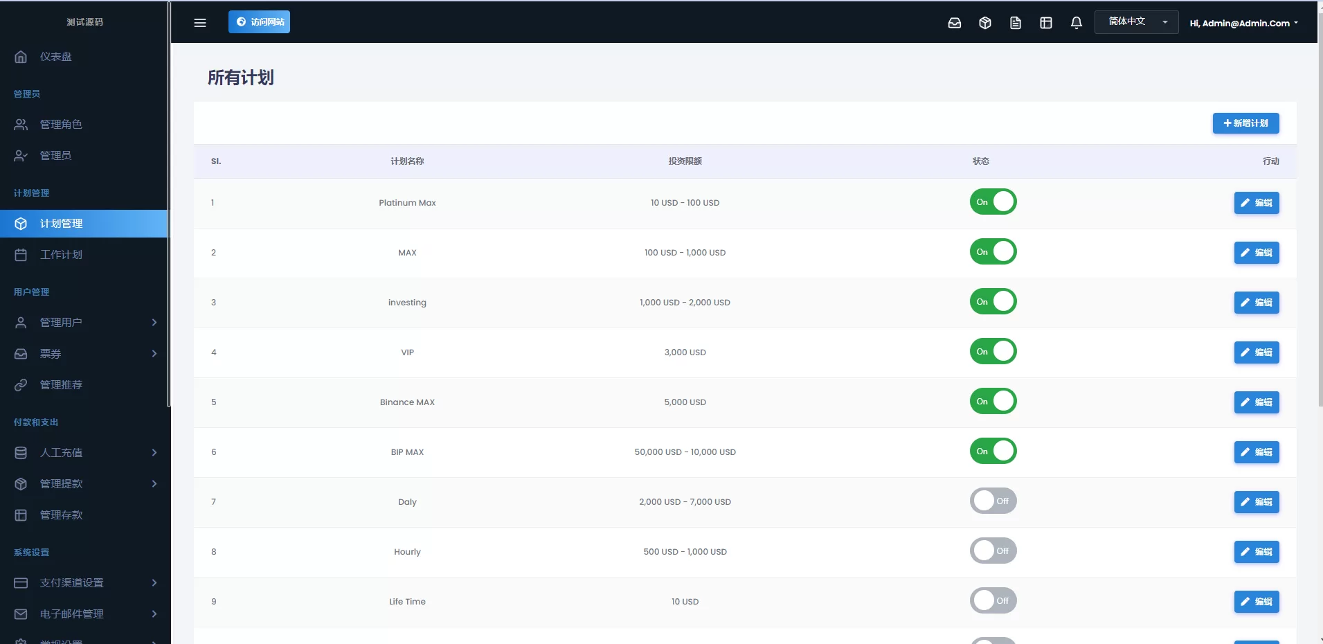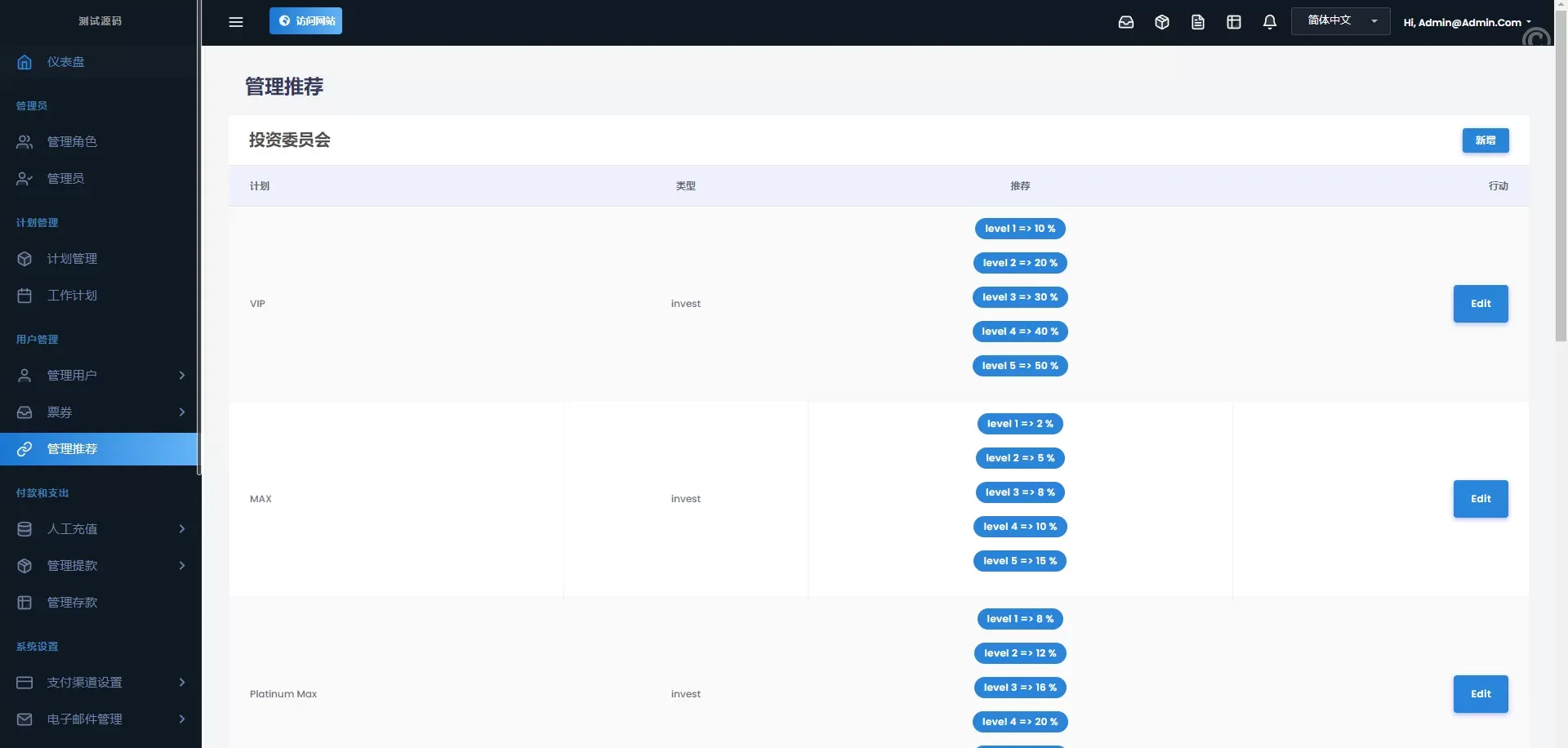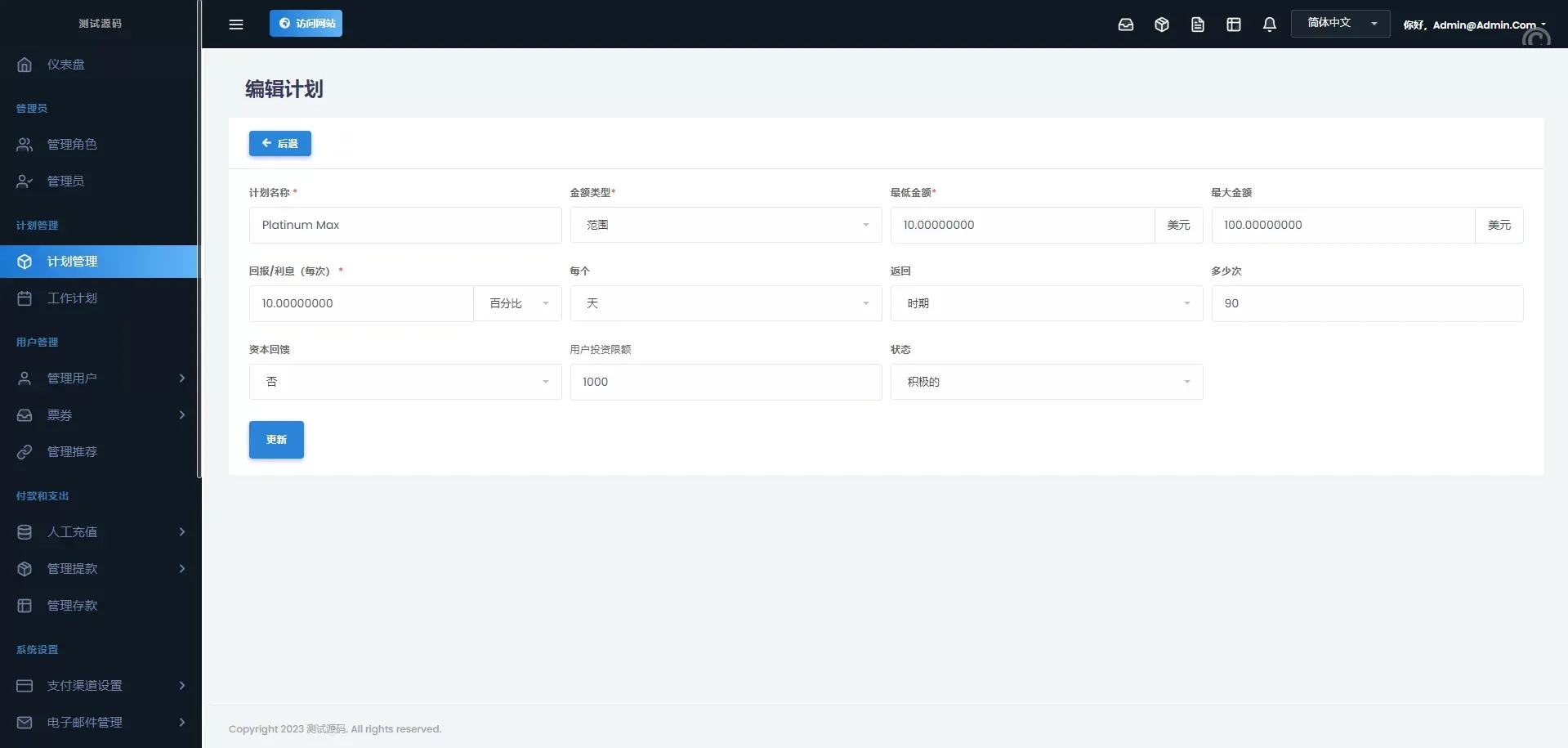 ✅ 计划管理:灵活配置不同的投资计划,支持定制化利率、期限等设置