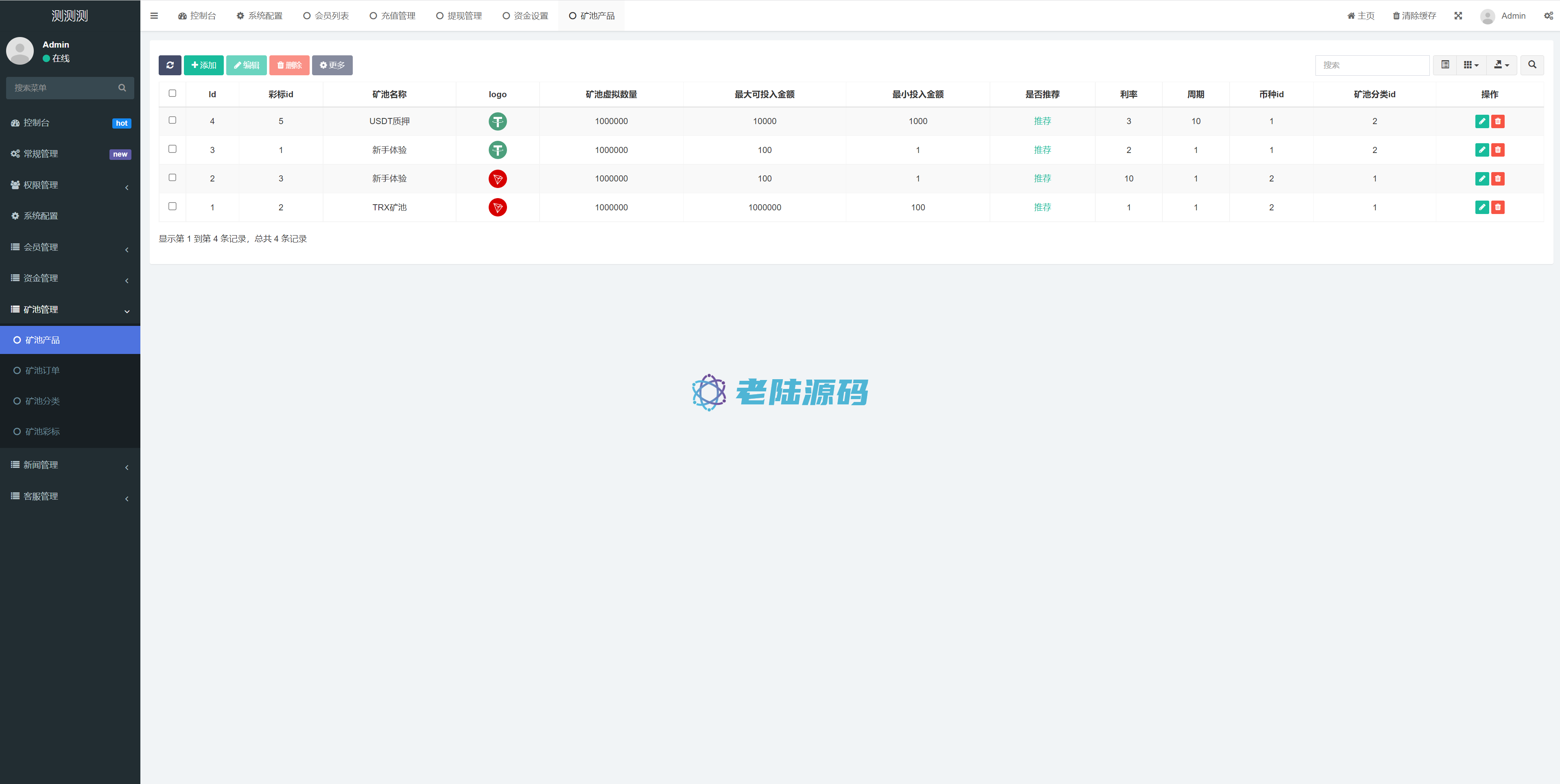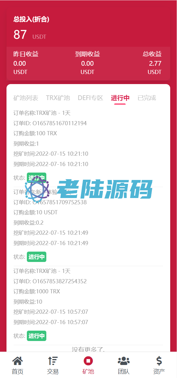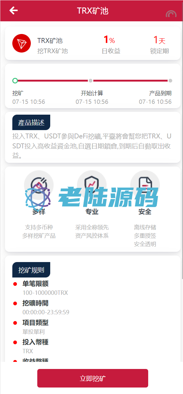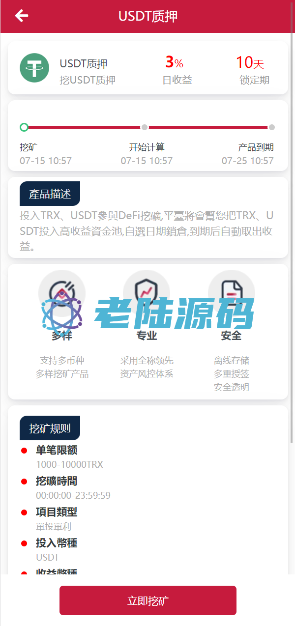 【特惠区块链投资理财】亲测USDT/TRX区块链理财系统/质押挖矿/云算力矿机系统 亲测USDT/TRX区块链理财系统/质押挖矿/云算力矿机系统 源码是全新开发的usdt/trx双币种的矿机投资系统 支持双币种充值提币方式,源码前端是编译后的,介意勿扰 USDT/TRX区块链理财 云算力矿机 区块链 区块链理财 投资理财 质押挖矿