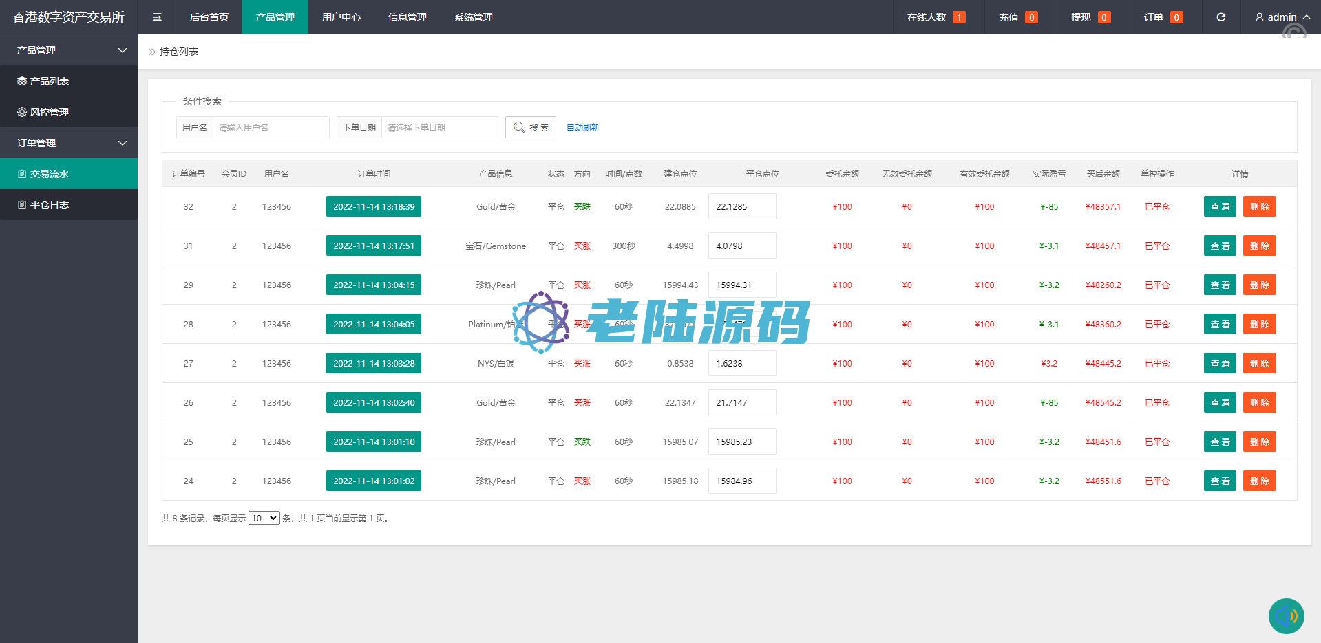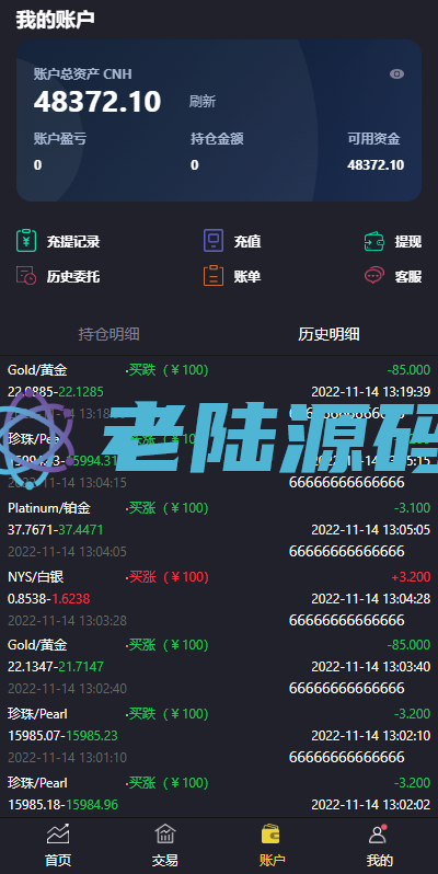 一套二开前端UI得贵金属微交易系统,前端产品后台可任意更换