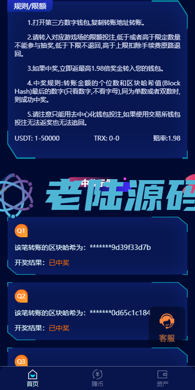 【哈希竞猜】前端vue版哈希竞彩/区块链哈希值游戏/usdt/trx双玩法 前端vue源码,后端FastAdmin框架,跟正常哈希没什么区别,这个是usdt/trx双玩法的 单源码,无教程 usdt/trx双玩法 区块链 区块链哈希值游戏 海外游戏