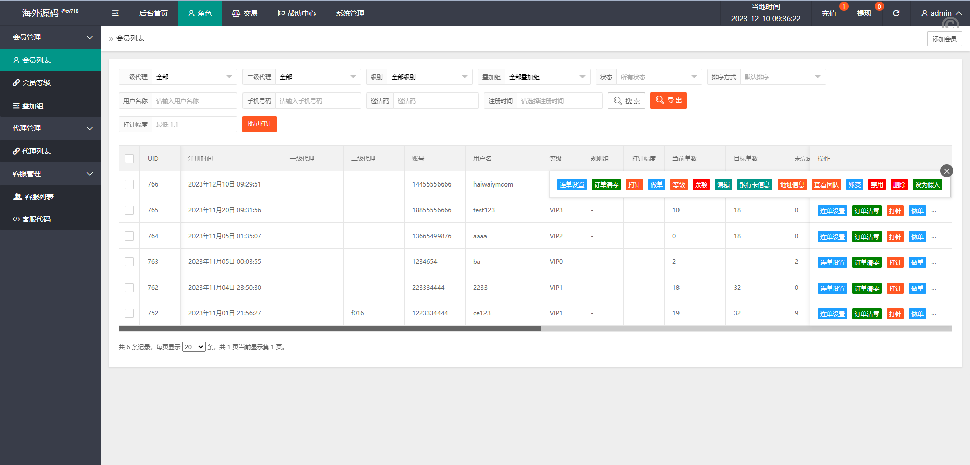系统支持連單卡單、叠加租、打针、权限代理等功能