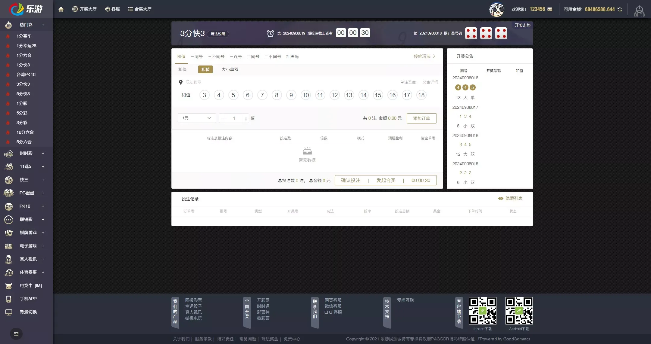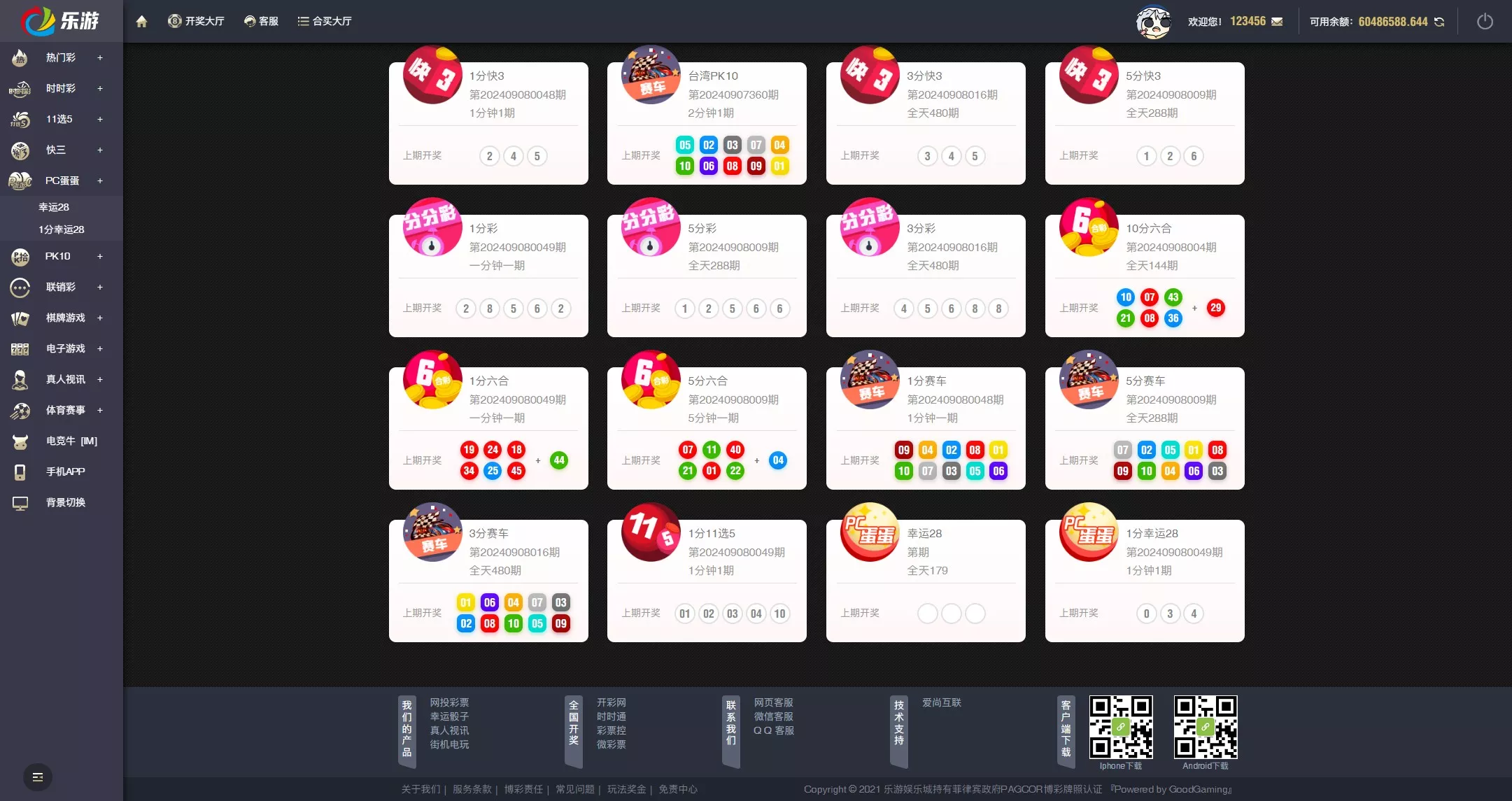 【大富二开全新UI乐游博悦娱乐源码】Linux系统+合买大厅+余额宝理财+前后端重构+完整运营修复版本 测试环境:Linux系统CentOS7.6、宝塔面板、Nginx、PHP5.6、MySQL5.6,伪静态参考搭建说明,开启ssl证书 大富二开的一套程序,前后端都重构了,体验感比原来的程序好太多太多,功能上也二开了一些,快三还有红黑码玩法 程序是修复了的,包括合买和开奖采集等 大富本身自带的一个SQL注入后门也清理掉了,只要你的防火墙做得不是很差,一些简单的渗透根本拿不下,更何况做成了Linux版本,安全性大大提高了 彩票 海外游戏