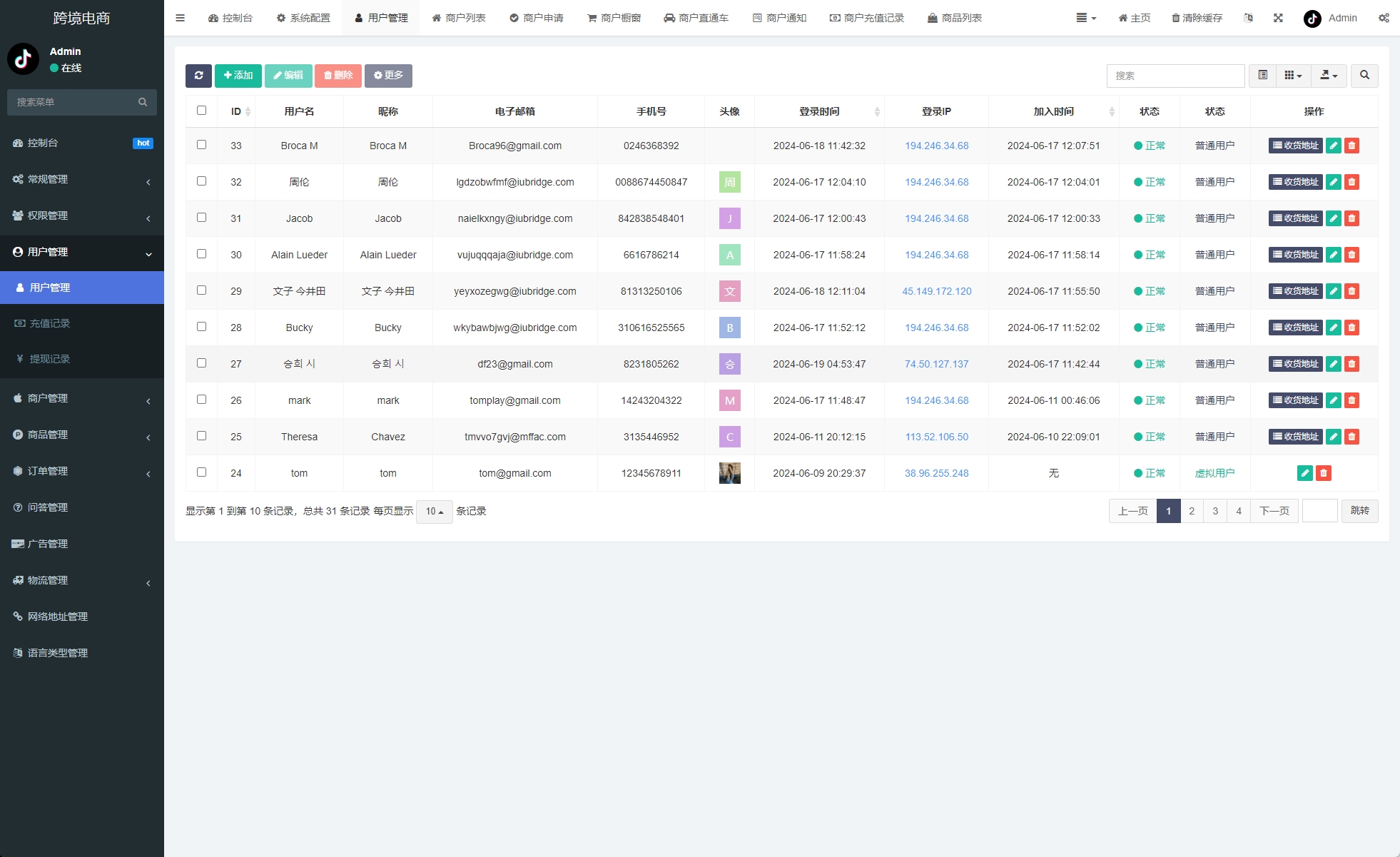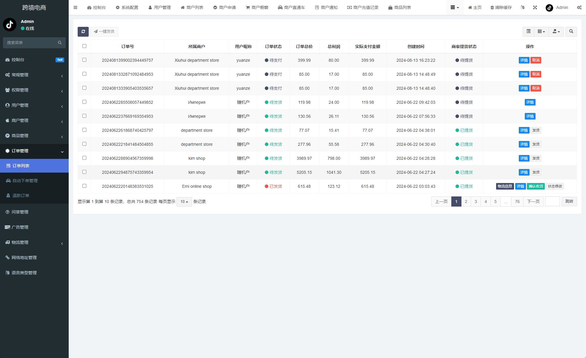 PHP版tiktok商城系统,商户端vue,手机端vue,后端是fastadmin框架,客服端thinkphp,全部修复完整